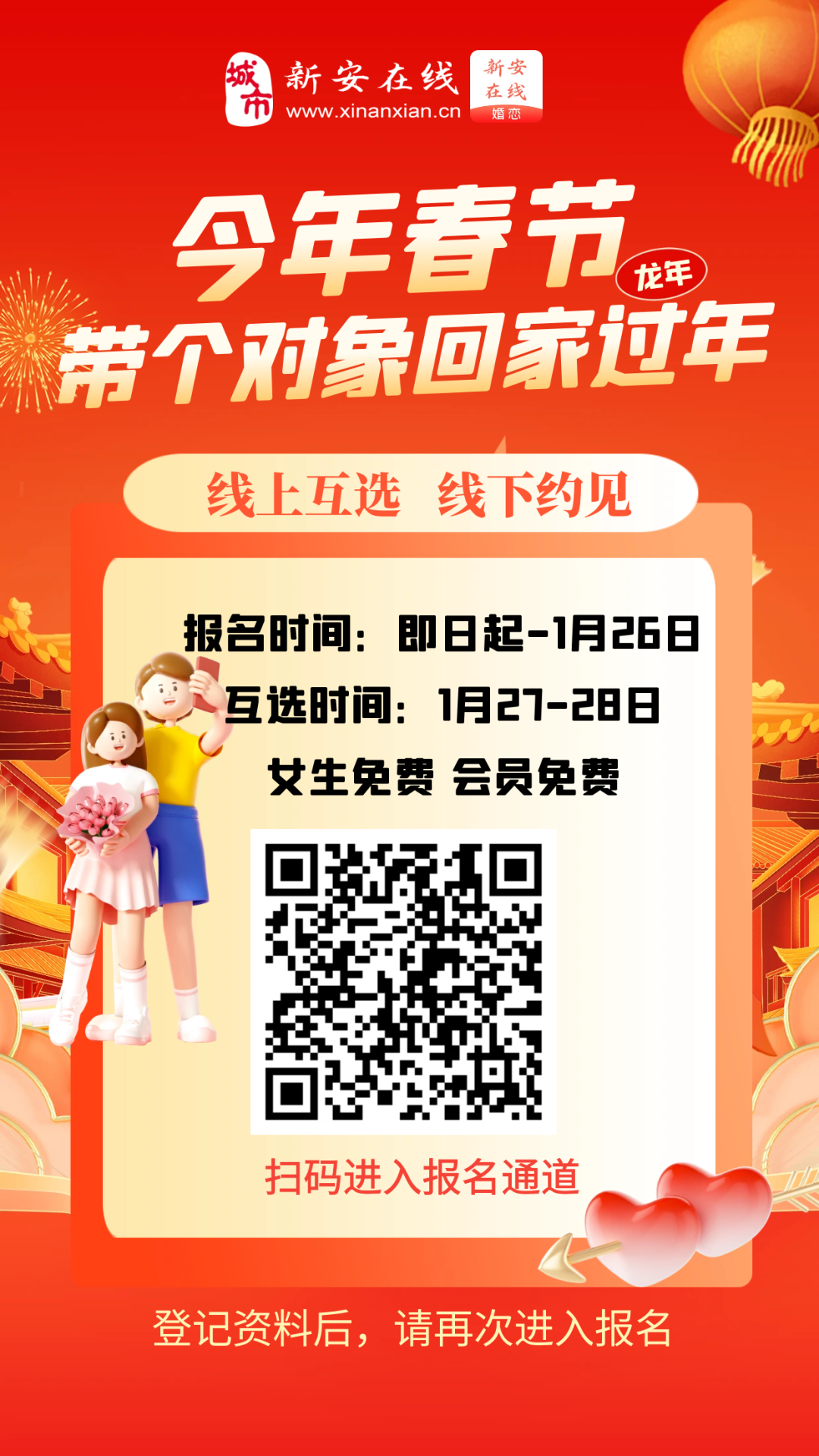 如果你也想通过《新安在线•婚恋》展示自己的信息,找到您的另一半,扫描下方二维码填写真实个人信息,上传自己真实照片,注意头像要真实,不能使用卡通画或者网络图片,否则无法通过审核哦。