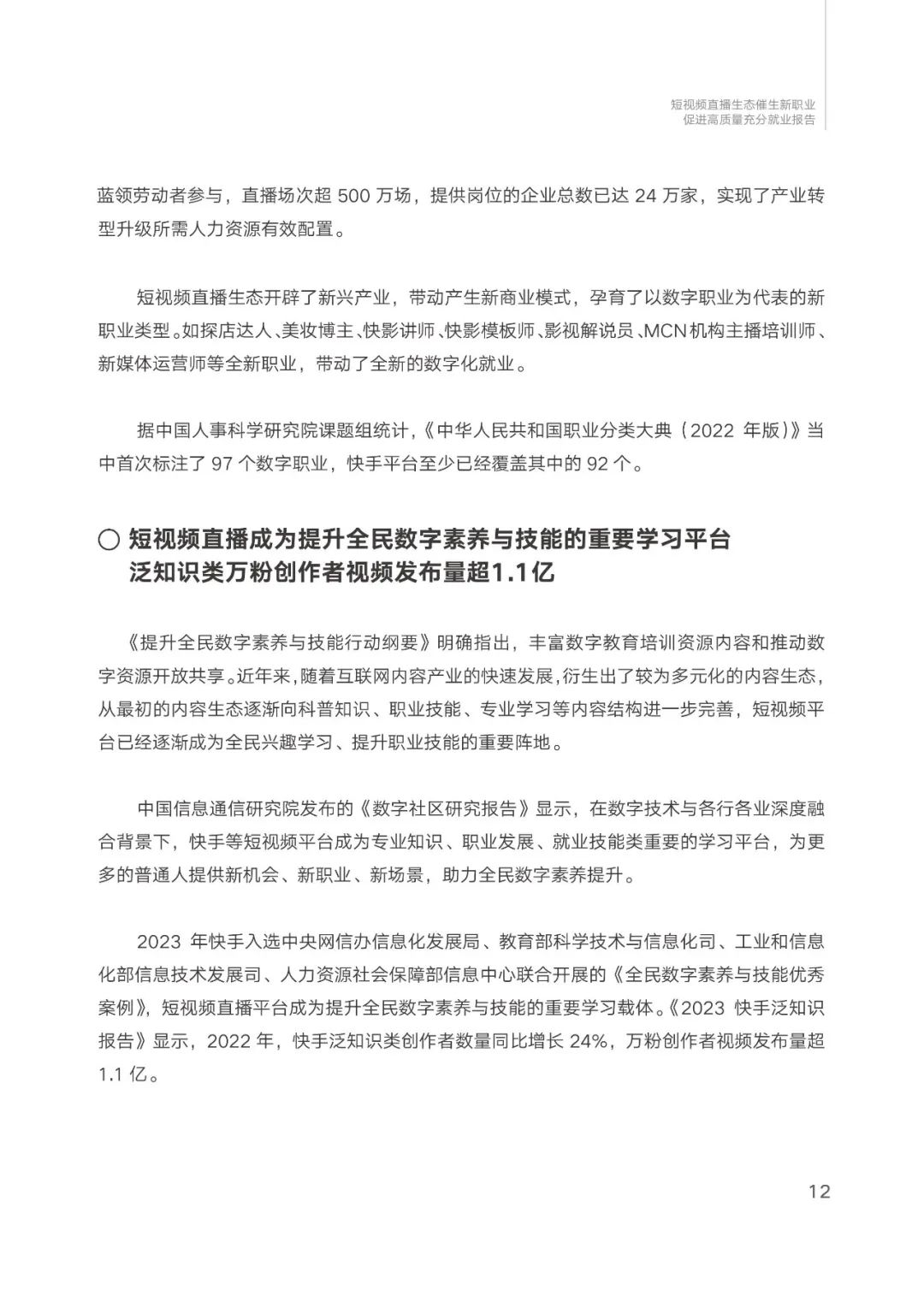 传媒行业:2023短视频直播生态催生新职业促进高质量发展充分就业报告