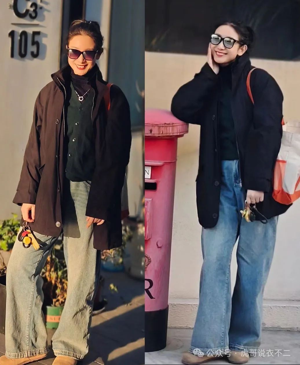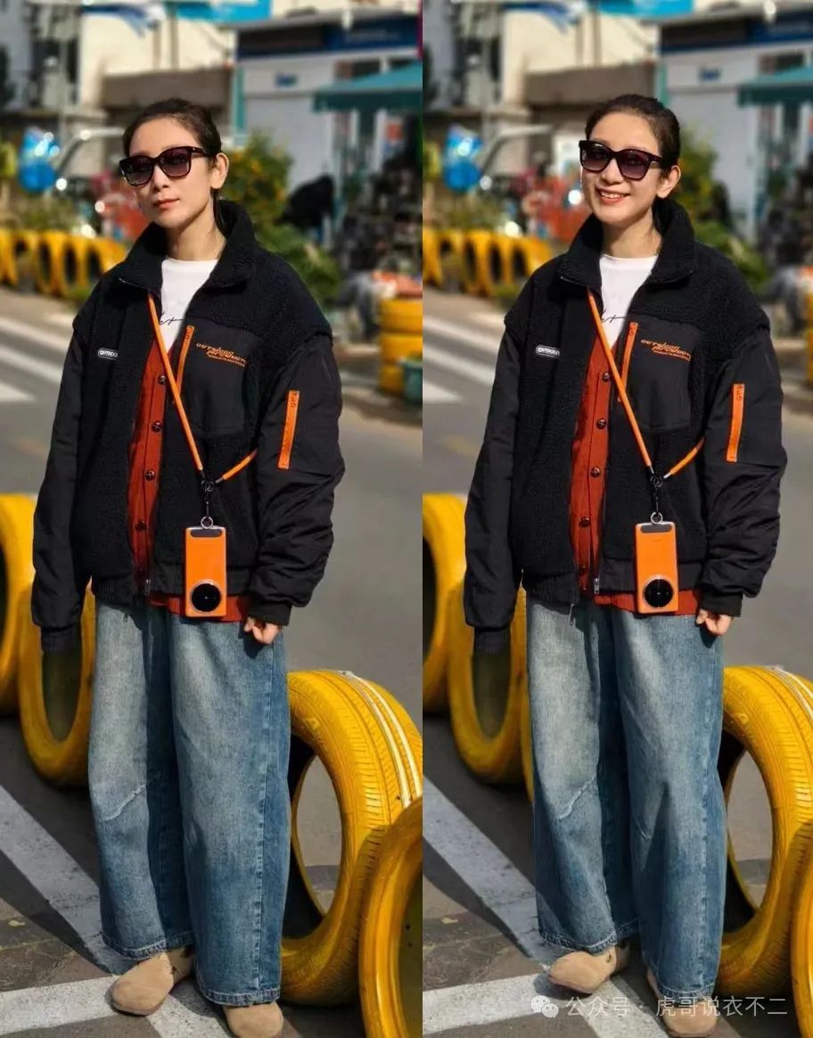 对于在冬季出镜率相当高的黑色外套,不少时尚女性也有着一个很通用的搭配套路,那就是下搭图中这样的阔腿牛仔裤,看起来帅气又不羁,一点也不会形成什么沉闷的感觉。