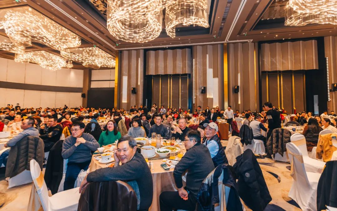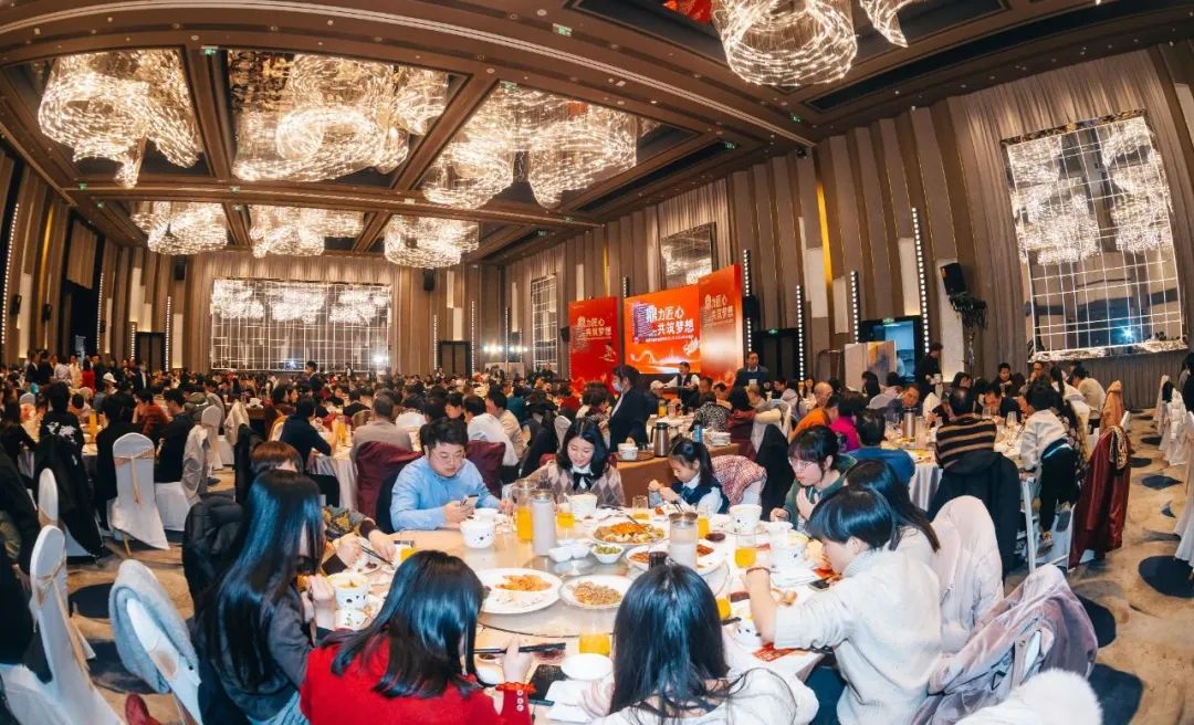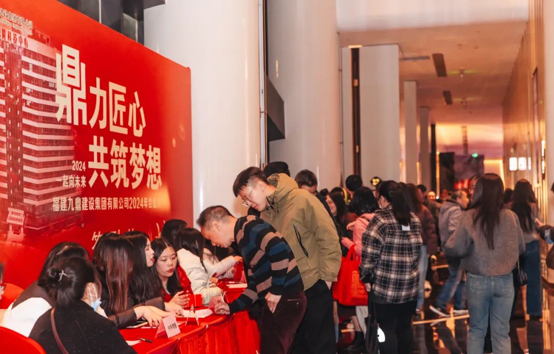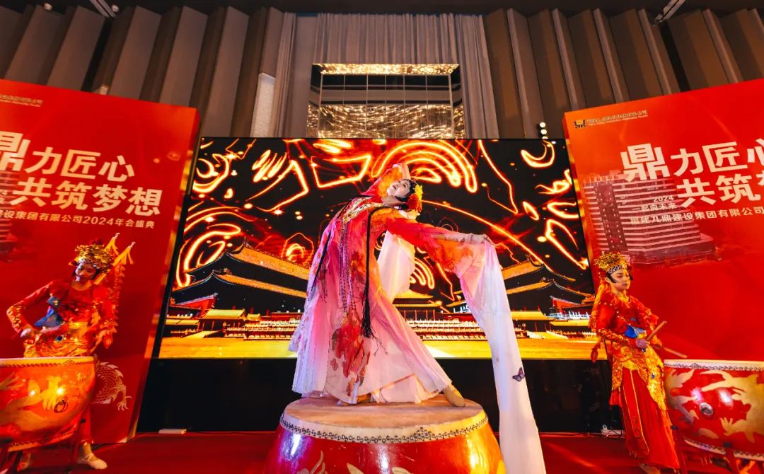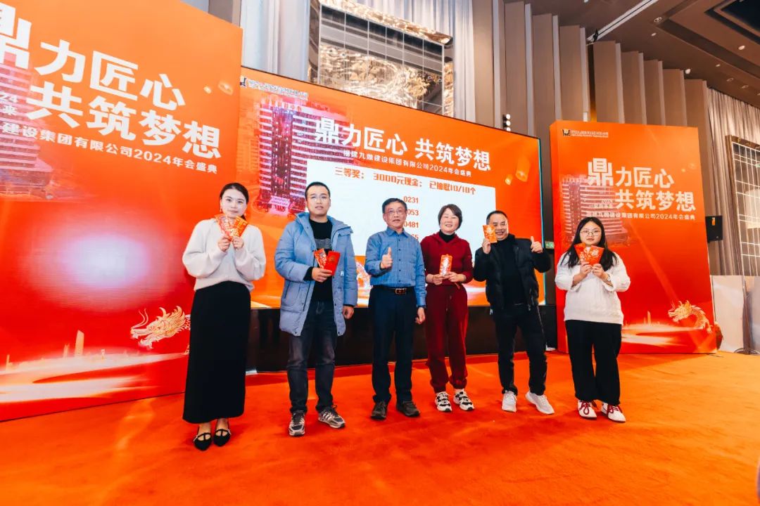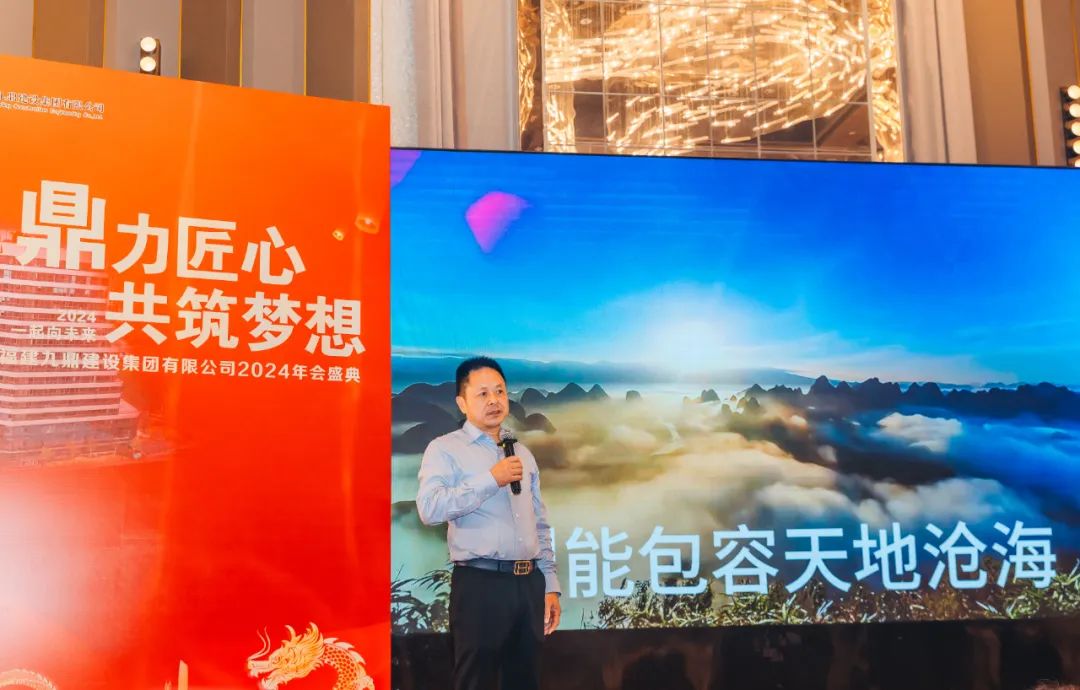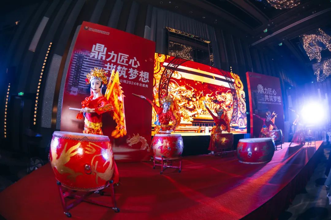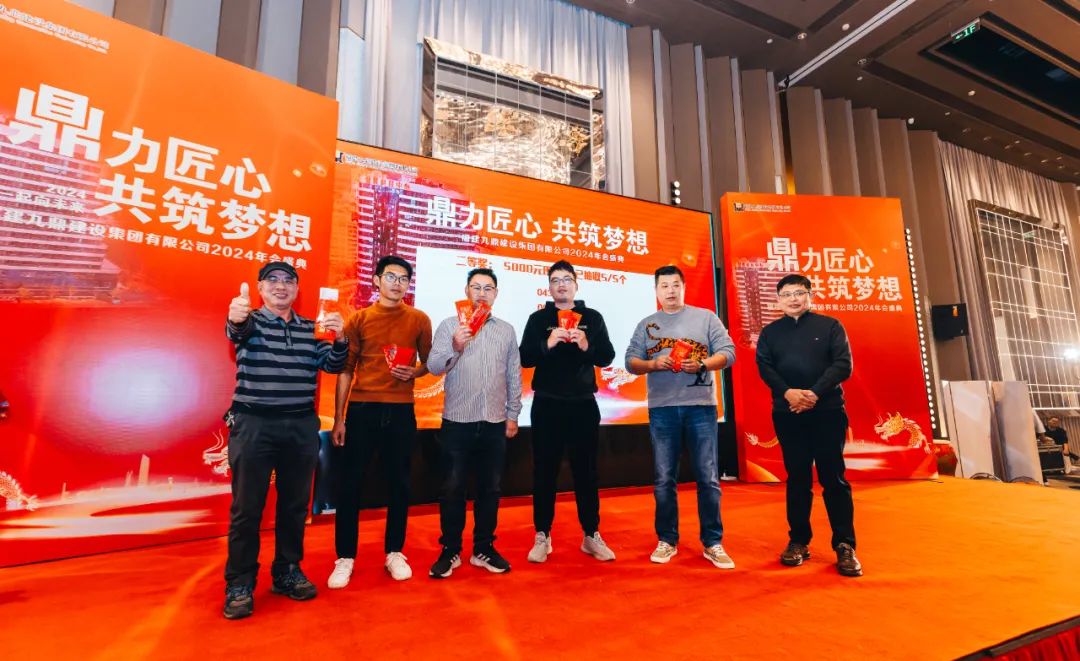 龙腾盛世,瑞气盈门!2024年1月25日,福州“悦港琴湾-福宴”望舒厅内张灯结彩,喜气洋洋,以“鼎力匠心,共筑梦想”为主题的福建九鼎建设集团有限公司2024年会盛典在这里隆重举行。九鼎集团、合龙建工、昆鼎建设、中科设计、闽清一建、九鼎源科技等六家企业近600人共襄盛典。现场洋溢着热情欢乐的氛围,各界人士济济一堂,畅叙发展,共享喜悦,共同谋划新的一年。