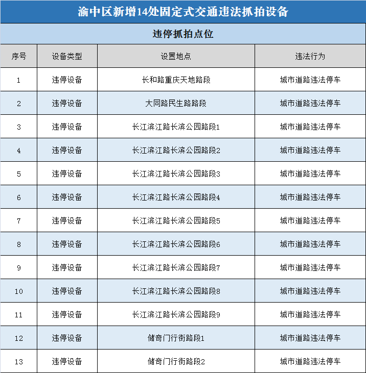 渝中新增14处电警