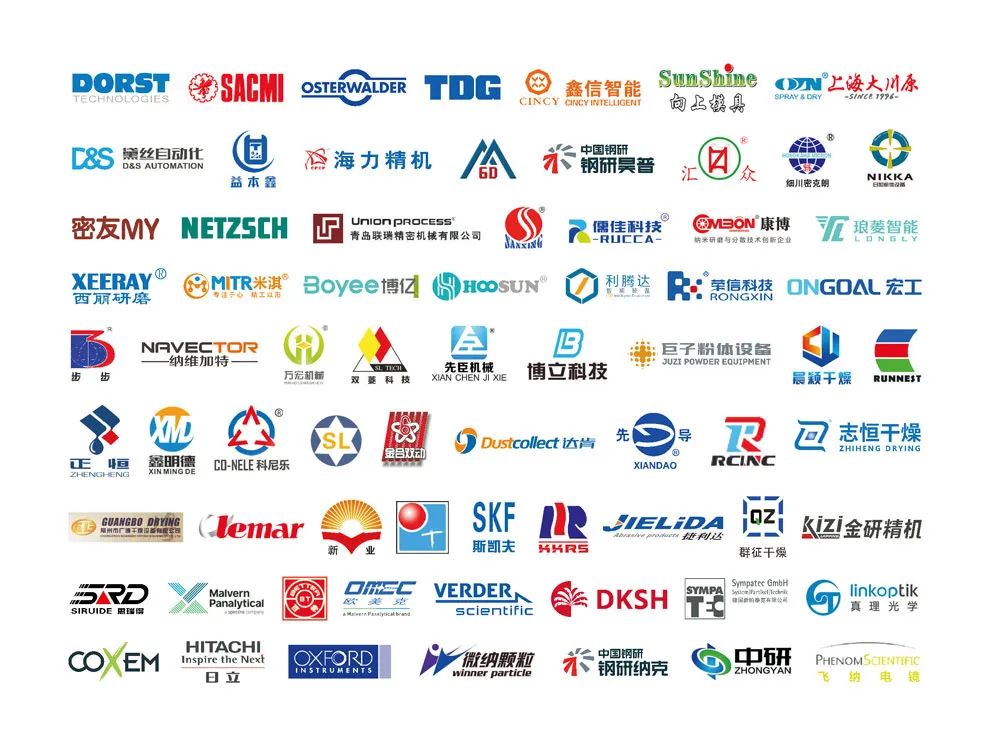 DORST、Sacmi 、Osterwalder、天通吉成、鑫信、象上、大川原、黛丝、益本鑫、海力、六度、钢研昊普、汇众、清大粉体、细川密克朗、日加、密友、耐驰、联瑞、叁星飞荣、儒佳、康博、琅菱、西丽、米淇、博亿、琥崧、利腾达、荣信、宏工、步步、纳维加特、万宏、双菱、先臣、博立、巨子、晨颖、如昂、正恒、鑫明德、科尼乐、新航,金合、达肯、先导、润智、志恒、广博、力马、新业、正佳、斯凯夫、日升、捷利达、群征、金研、思瑞得 、马尔文帕纳科、百特、欧美克、弗尔德、大昌华嘉、新帕泰克、真理、天耀、日立、牛津、微纳、钢研纳克、中研、复纳、等等。