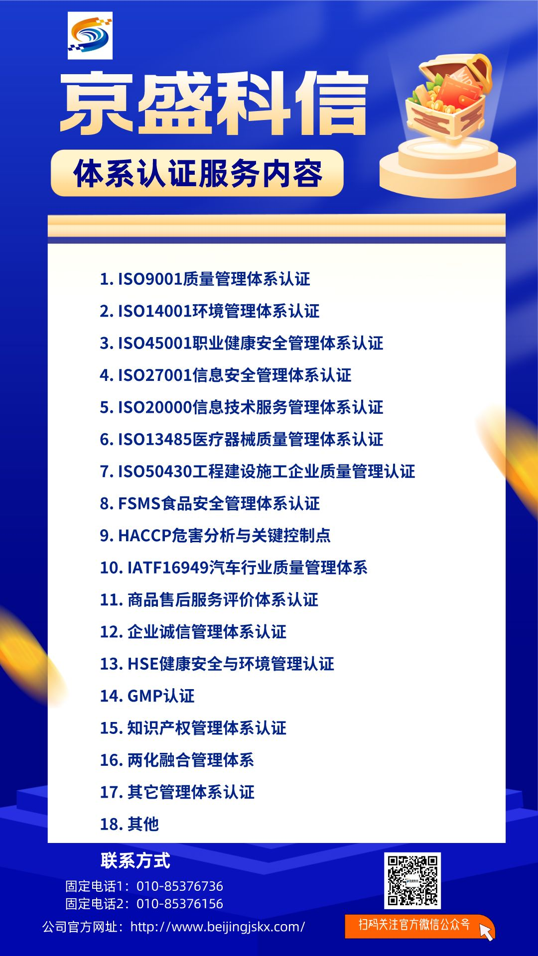 好啦,今天就跟大家分享到这里,如有相关疑问或者有ISO体系认证需求,欢迎拨打文末服务热线联系京盛科信~