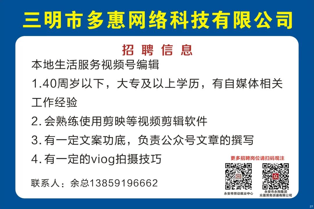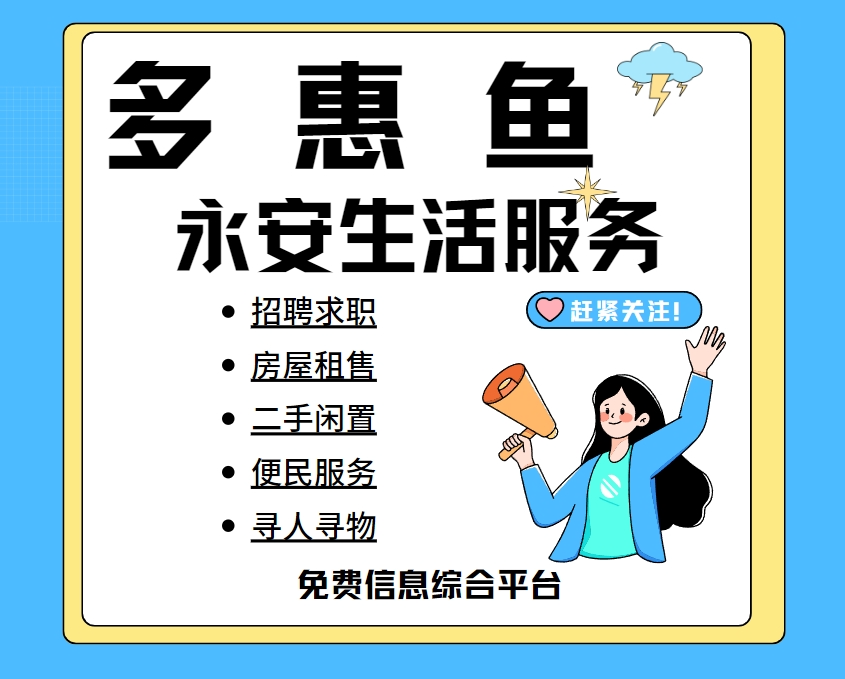 以上信息是由永安本地资讯网平台用户自行发布,所有内容均由发布者对信息的真实性负责,多惠鱼永安生活服务平台及本公众号平台仅提供信息发布、展示,不对用户信息内容的真实性负责。