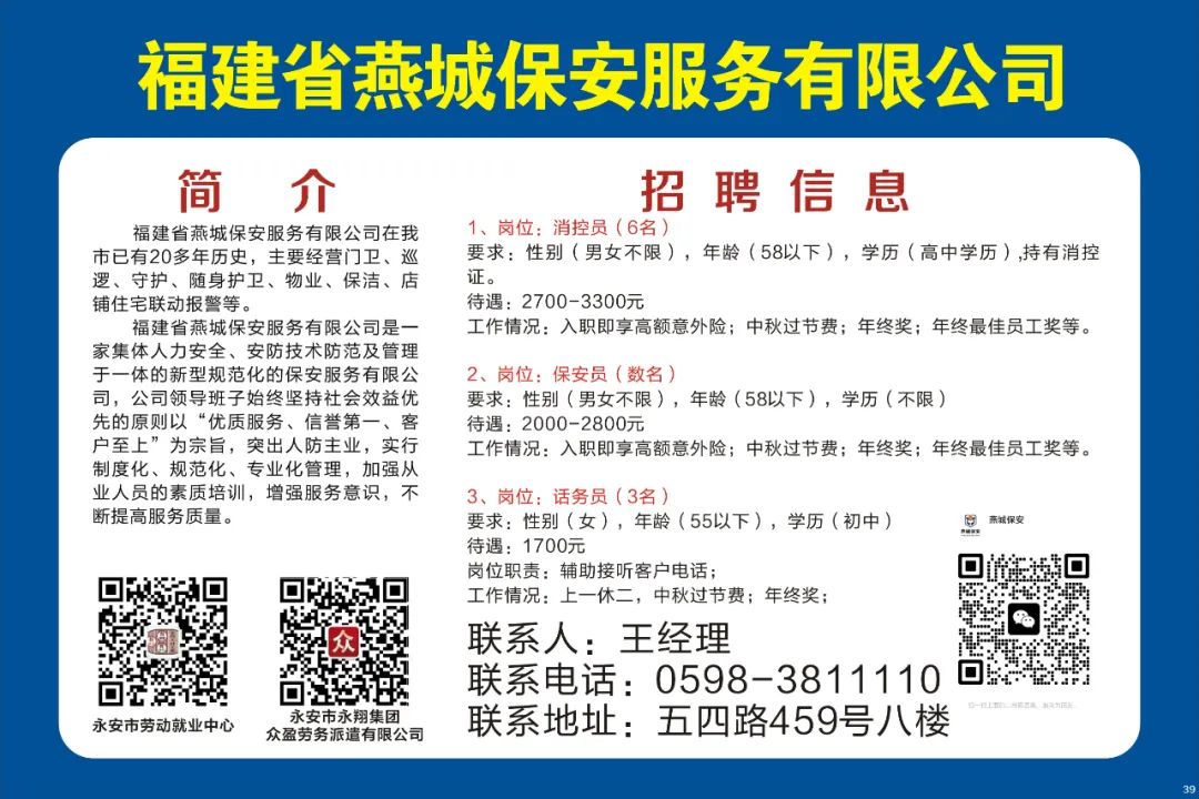 稿件来源:永安市劳动就业中心