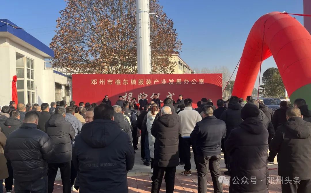 1月24日,邓州市举行穰东镇服装产业发展办公室揭牌仪式,市委副书记马俊宏,市政府党组成员刘连波,市开发区党工委书记、管委会主任赵明辉出席。