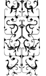 重复对称是指以中心轴或中心点为对称参考,将相同的图形重复放置在对称轴或点的上下、左右[13]。楚凤纹样的构图布局中有一些采用了具有形式美的对称手法,纹样的主体可以是1个凤或是以凤为主体的多重复合造型,通过对称轴进行上下或左右2个方向重复排列。最为经典的是“对龙对凤纹绣”,纹样主体按照垂直线为左右的对称轴进行纵向排列,8个单元格之间以花草相连接。此纹样不仅在对称形式上增加了独特之处,还将凤鸟的神态描写表现得淋漓尽致。在第三个和第八个单元格中的凤鸟纹相对而立、展翅起舞,颈项弯曲的凤鸟在第五和第七个单元格内高卷尾羽,尽显优雅与华丽(图6)。在稳定的格式中使楚凤造型更加生动形象,具有节奏和韵律感,让人们感受到轻松愉悦、昂扬向上的氛围。