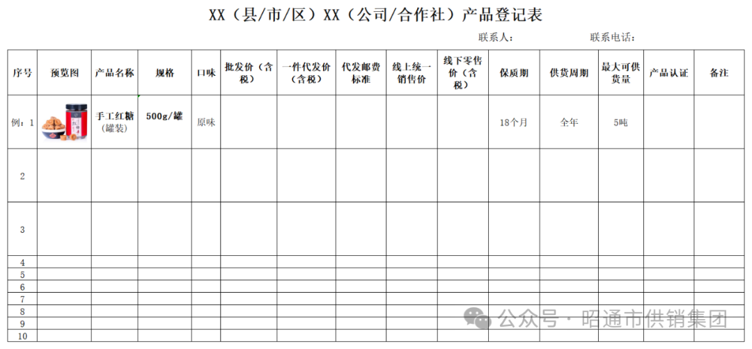 3.填报资料:昭通市供销集团有限公司产品登记表;