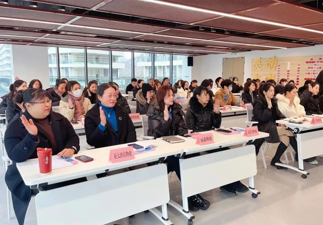 1月26日下午,莲都区物业服务行业协会妇联成立暨第一次妇女代表大会召开。区妇联党组书记、主席蓝海霞,区妇联副主席张凌、区建设分局副局长陈鹤驰,岩泉街道党工委副书记徐伟等领导参加。来自莲都区物业企业的50名女性代表参加了会议。