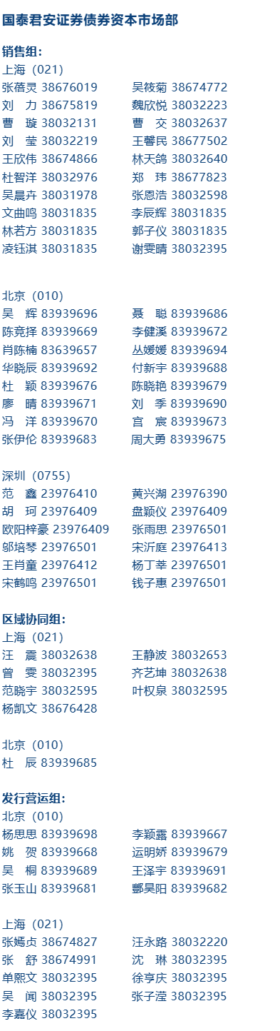 本公众号发布的项目信息具体以合同及相关法律文件为准;其他信息基于公开披露资料,但不保证所载信息的准确性和完整性。对于本公众号发出或转载内容,我公司对这些信息的准确性、完整性不做任何保证。在任何情况下,公众号中的信息或表达的意见均不构成对所述证券或产品的出价、询价、要约或要约邀请。在任何情况下,我公司不就本公众号中的任何内容做出任何形式的担保。国泰君安证券资本市场部对于本声明条款具有修改和最终解释权。