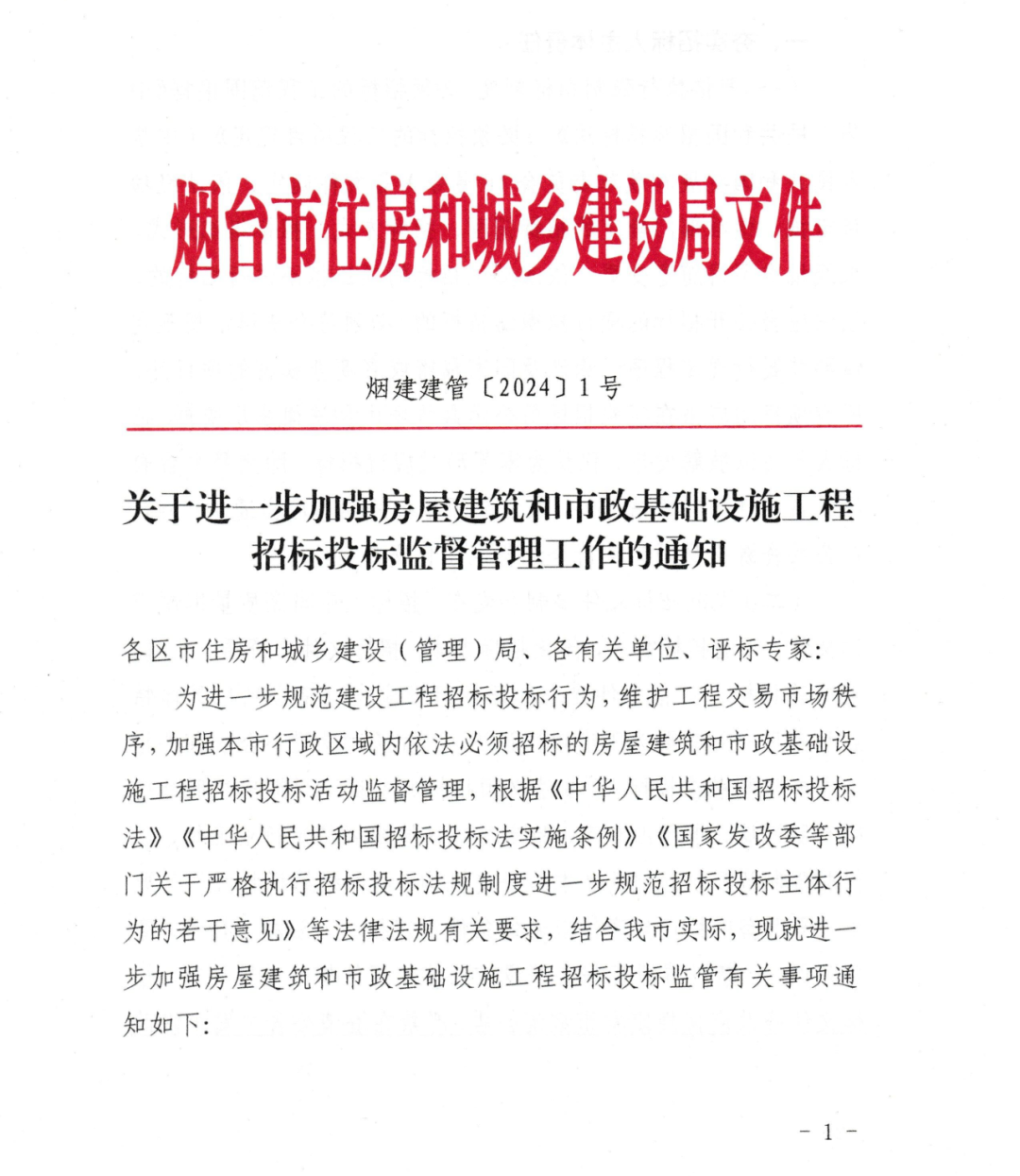 此前,山东省烟台市住建局发布《关于进一步加强房屋建筑和市政基础设施工程招投标监督管理工作的通知》。明确:除交易平台暂不具备条件等特殊情形外,依法必须招标的项目应当通过“烟台市公共资源交易网”实行全流程电子化交易。