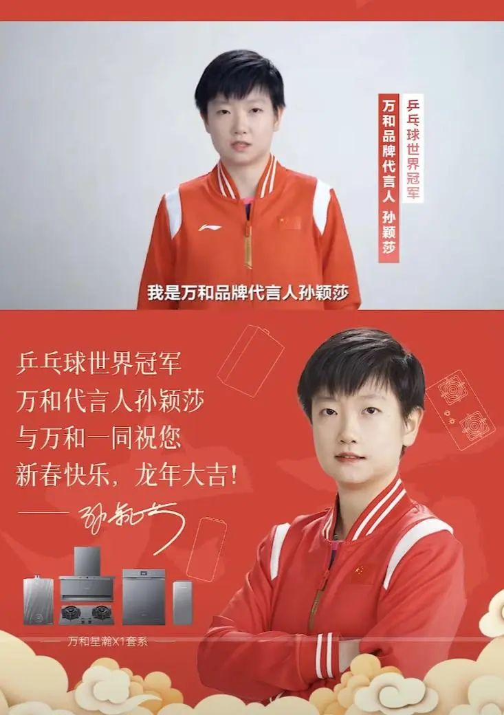 接下来是莎莎的代言,莎莎在2023伊始代言了pico4虚拟机,而后还代言了万和品牌(燃气制造企业)。