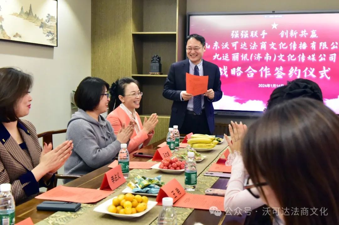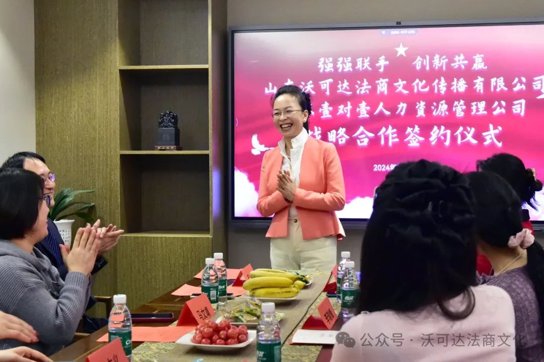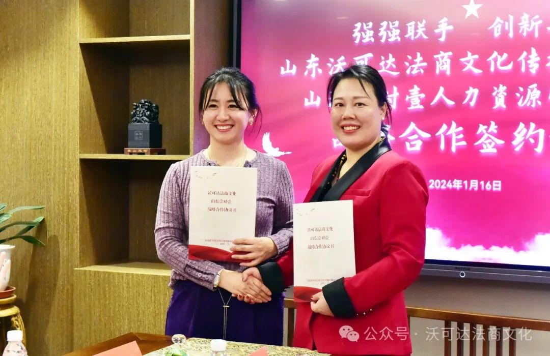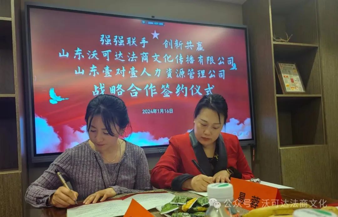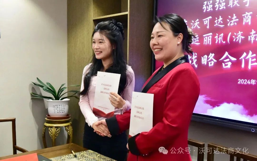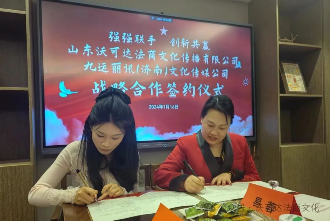 这次仪式上,还见证了济南市工商联女企业家商会理事单位山东沃可达法商文化传播有限公司总经理易蓉与济南市工商联女企业家商会理事单位山东壹对壹人力资源管理有限公司总经理李瑞锋就企业法商文化媒体运营方面进行战略合作签约,双方将通过深入合作,共同打造更加专业和具有影响力的企业法商文化媒体平台,为企业提供更全面、高效的服务。
