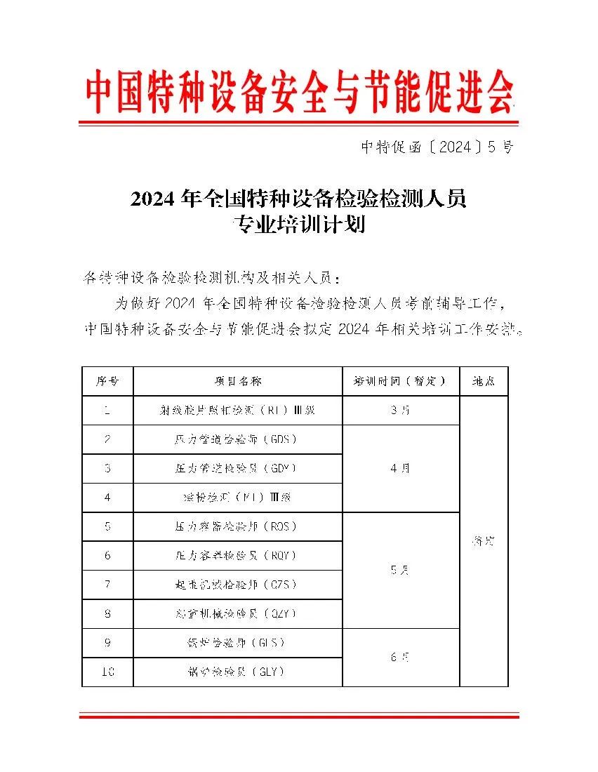 【促进会通知】为做好2024年全国特种设备检验检测人员考前辅导工作,中国特种设备安全与节能促进会拟定2024年相关培训工作安排。