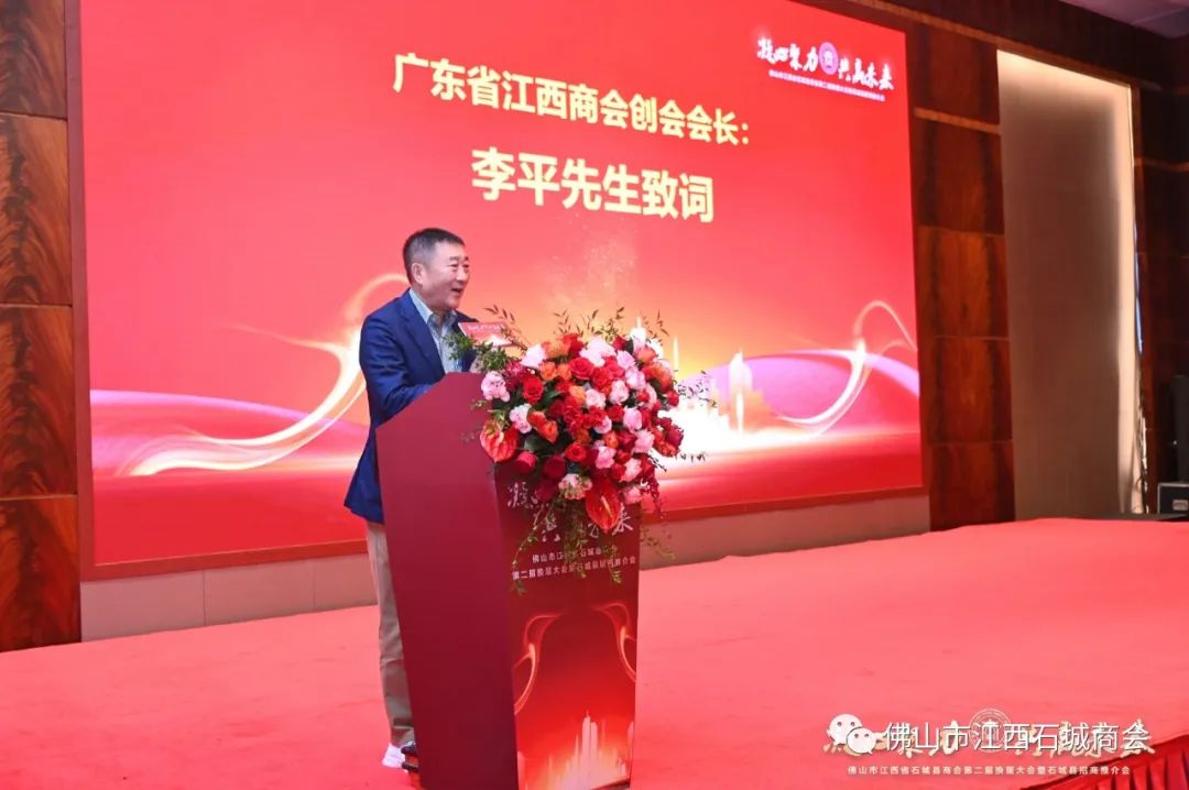 ▲广东省江西商会创会会长、佛山市江西石城商会荣誉会长李平先生致辞