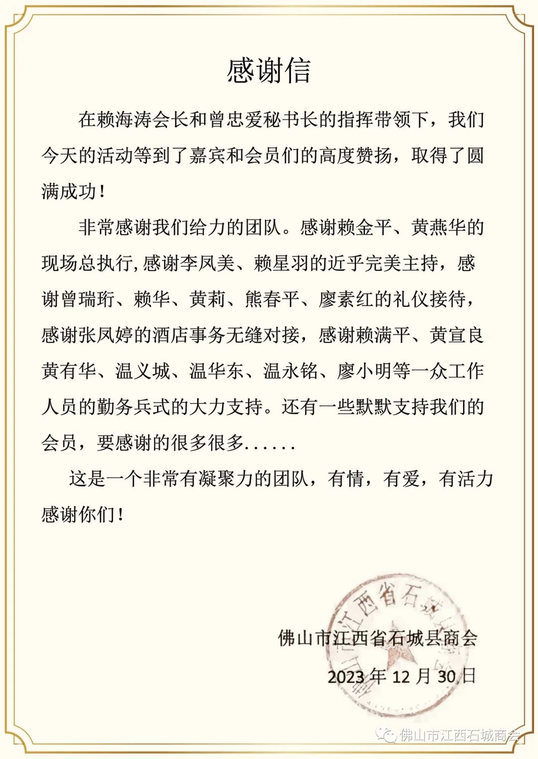 非常感谢政府领导和各兄弟商会为佛山市江西石城商会的企业家们赋能。大鹏一日同风起,扶摇直上九万里,让我们行稳致远,共赴新征程。