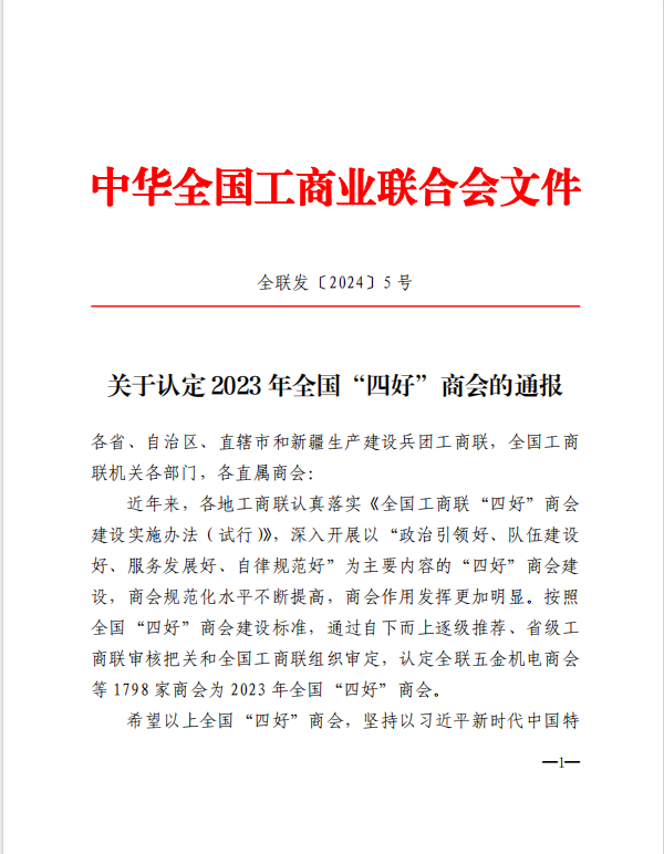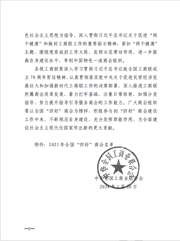 1月26日,中华全国工商业联合会发布《关于认定2023年度全国“四好”商会的通报》,海南省黑龙江商会喜获全国“四好”商会荣誉称号!