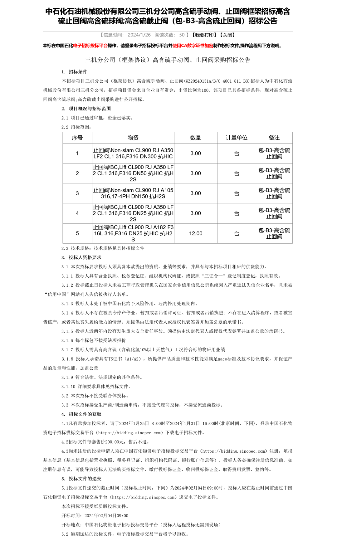 本公告在中国采购与招标网、中国石化物资电子招标投标交易平台(http://bidding.sinopec.com)、中国石化物资采购电子商务平台(http://ec.sinopec.com)、机电产品招标投标电子交易平台(http://www.chinabidding.com)同时发布,本公告的修改、补充在以上媒介同时发布。