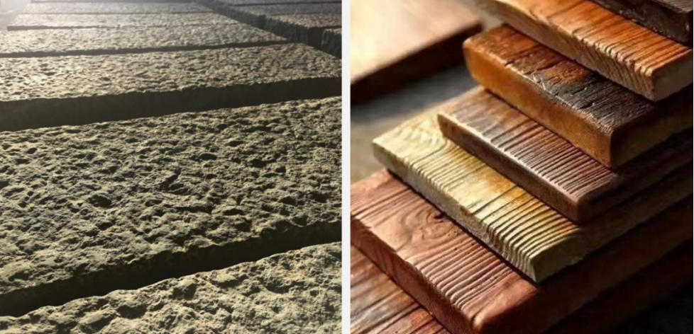很多人认为珍木就是普通混凝土仿木,但其实珍木是崀玉在混凝土仿木的基础上研发的迭代产品。2011年,王忠平敏锐地抓住了绿色发展的时代风口,注册了崀玉商标,经过大量的开创性研究及配方优化实验,率先成功研发出具有实木效果的的第一代生态珍木。第一代生态珍木投入使用后,市场反馈表面刷漆,长时间使用后会掉漆。于是,第二代免油漆珍木应运而生,升级后,第二代珍木地板比混凝土仿木耐磨性更高。