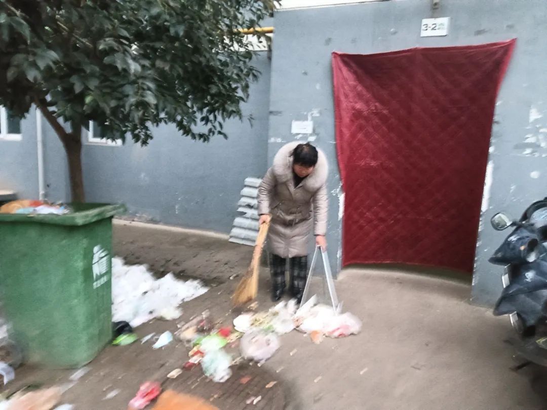 城市嘉园小区物业工作人员打扫小区公共区域的卫生,营造良好的小区环境。