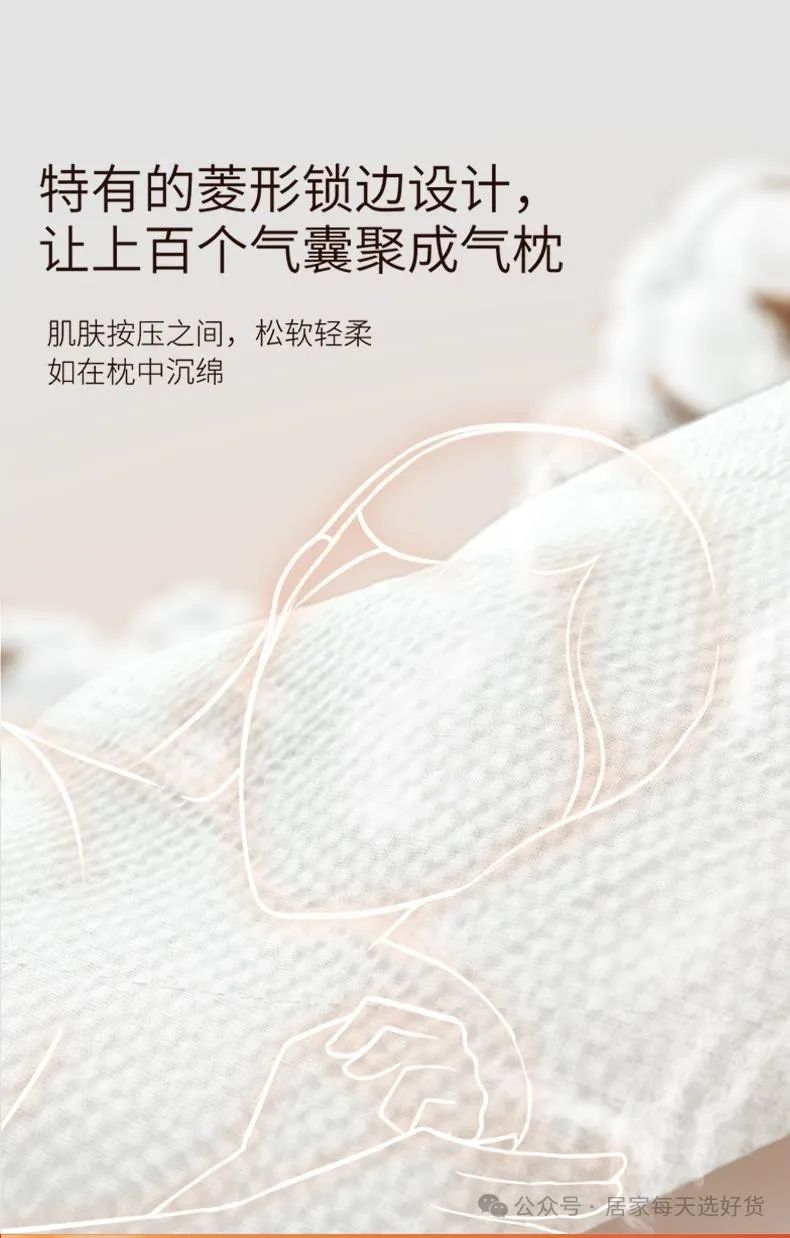 特有的菱形锁边设计,让上百个气囊聚成气枕