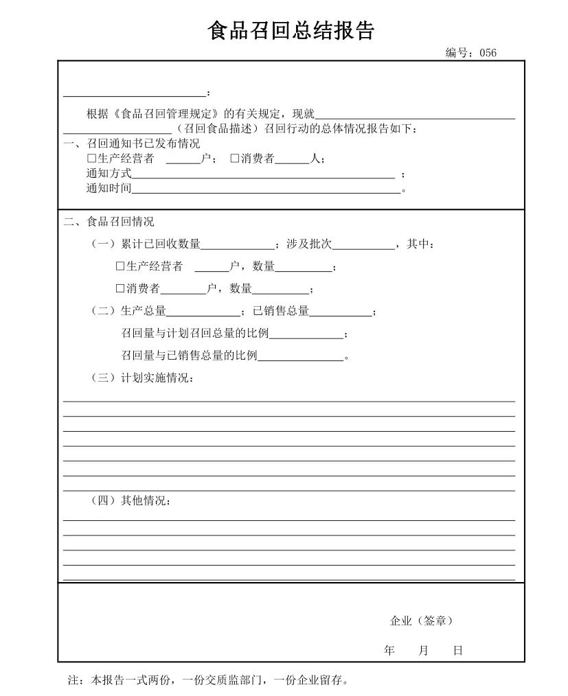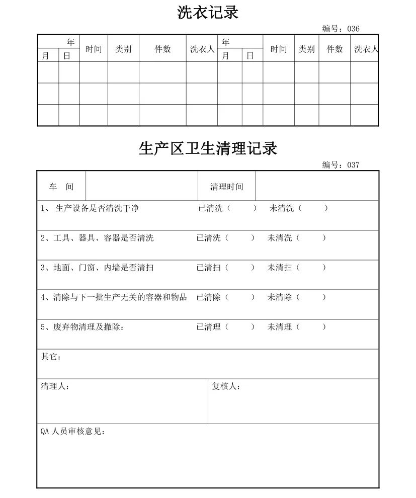 | 36、洗衣记录 | 87、食品召回总结报告 |