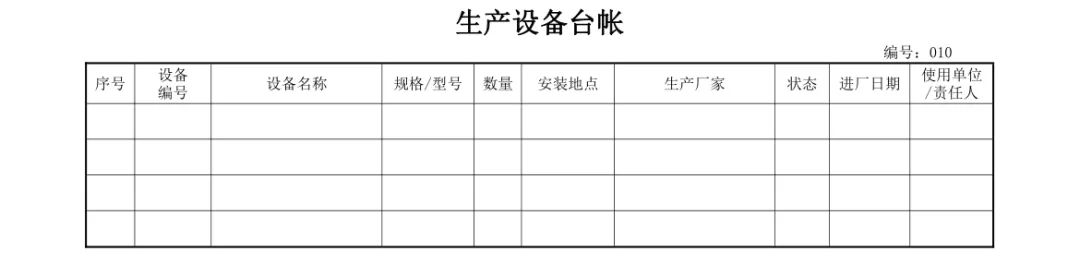 | 10、生产设备台帐 | 61、前处理生产记录 |