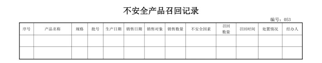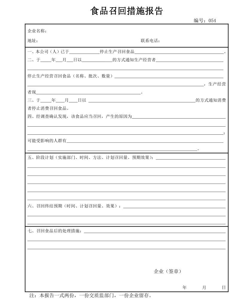 | 34、配料记录表 | 85、食品召回措施报告 |