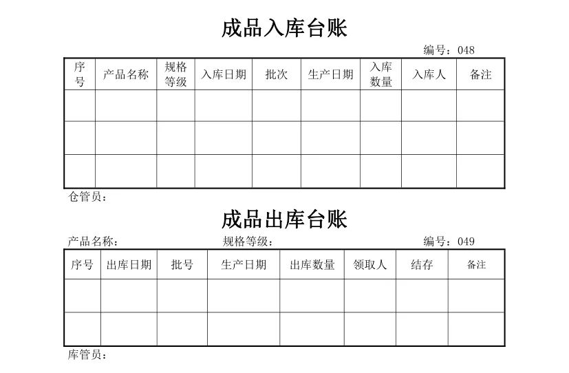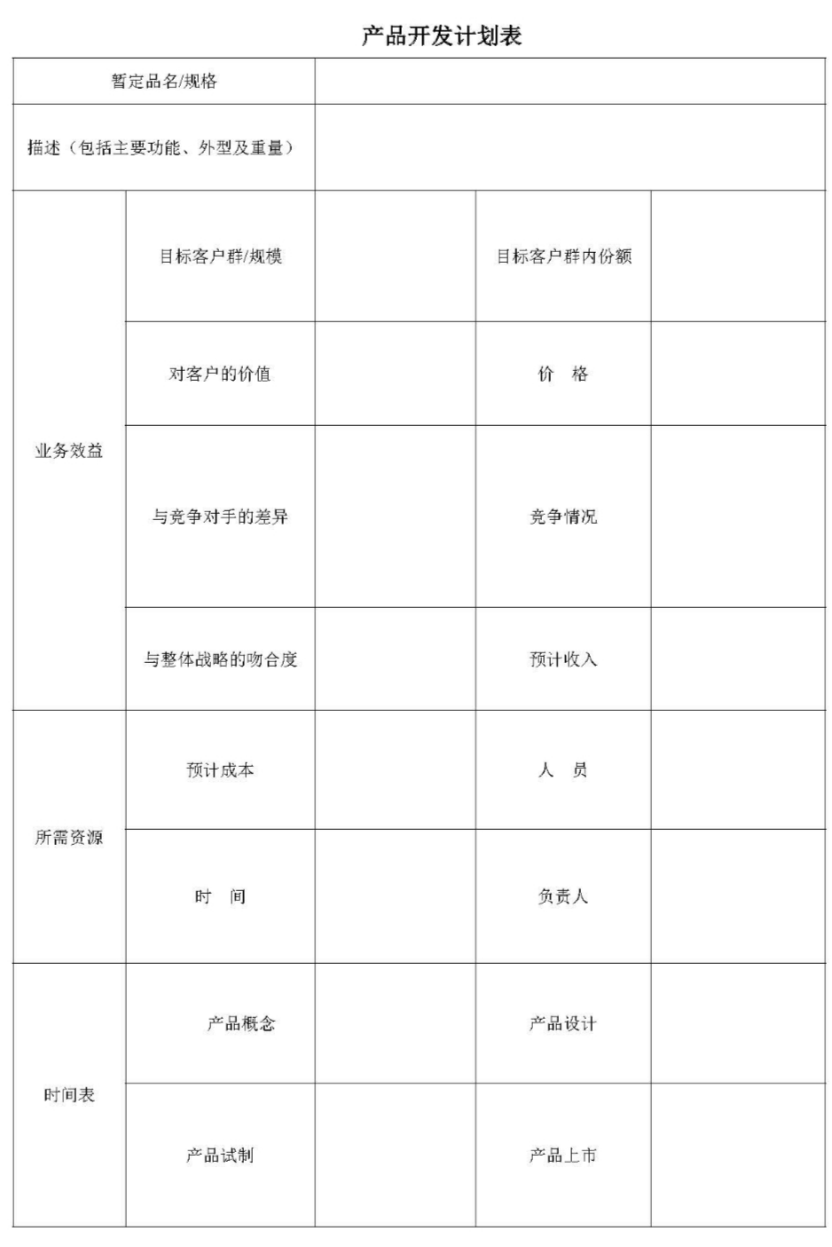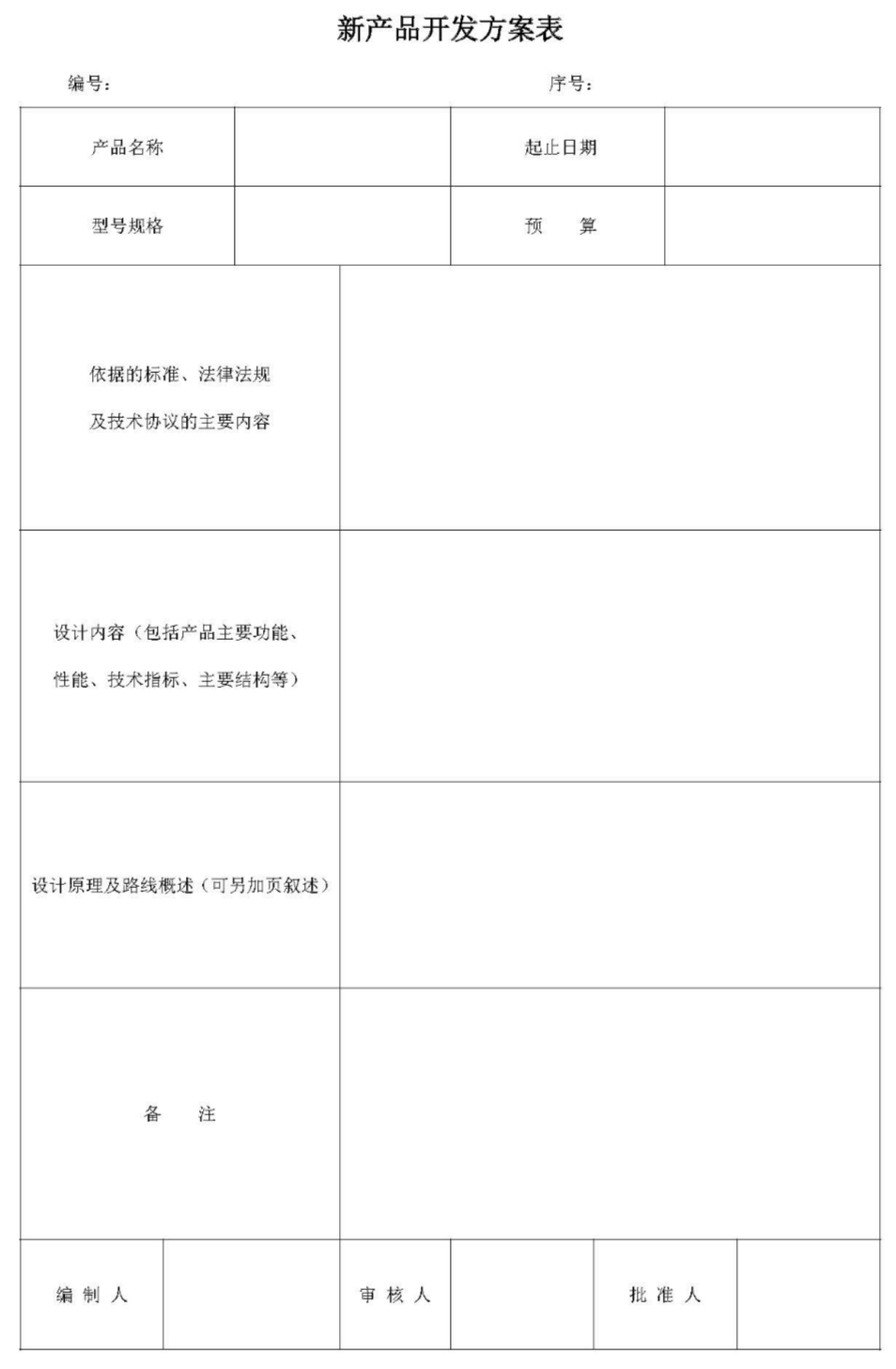 | 48、成品入库台账 | 99、新产品开发方案表 |