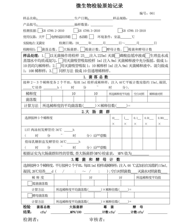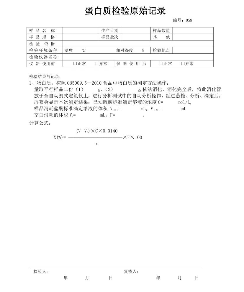 | 39、消毒液配制记 | 90、蛋白质检验原始记录 |