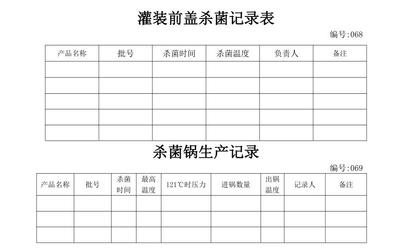 | 8、设备维修保养确认记录 | 59、灌装前盖杀菌记录表 |