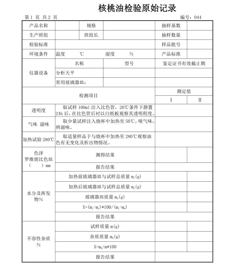 | 44、核桃油检验原始记录 | 95、培训记录表 |