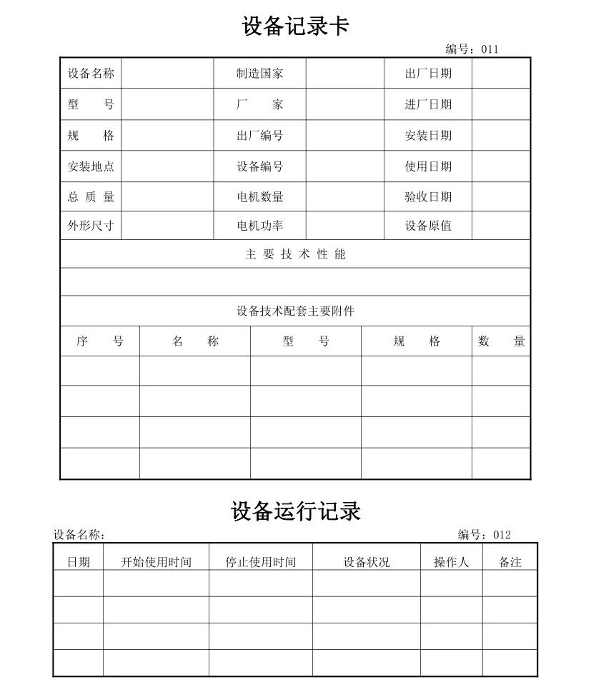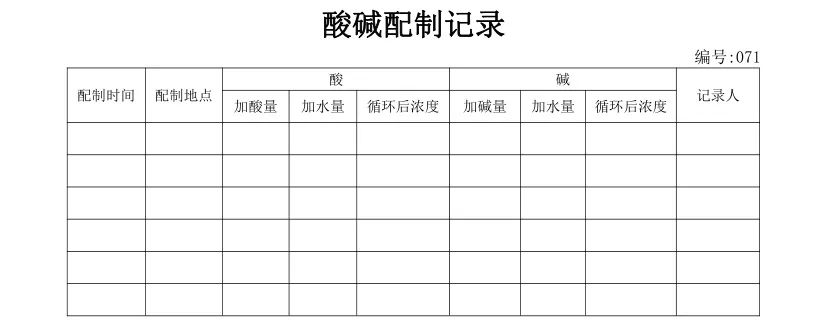 | 11、设备记录卡 | 62、酸碱配制记录 |