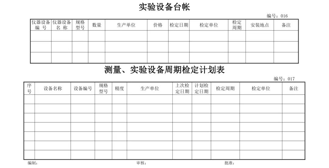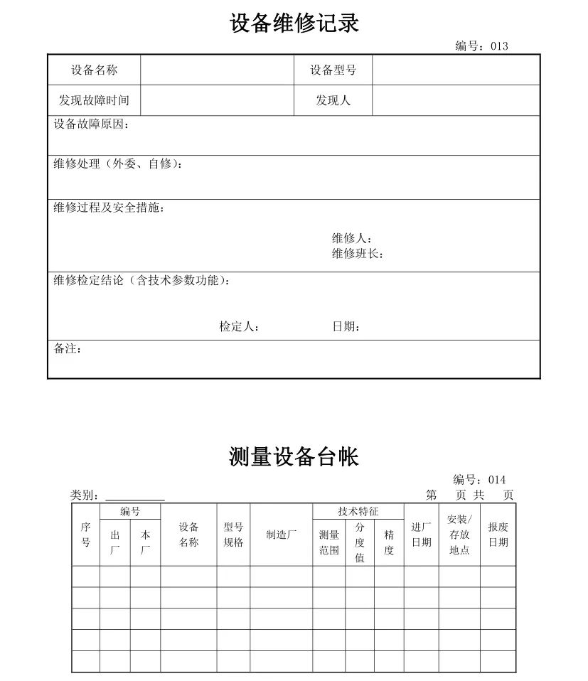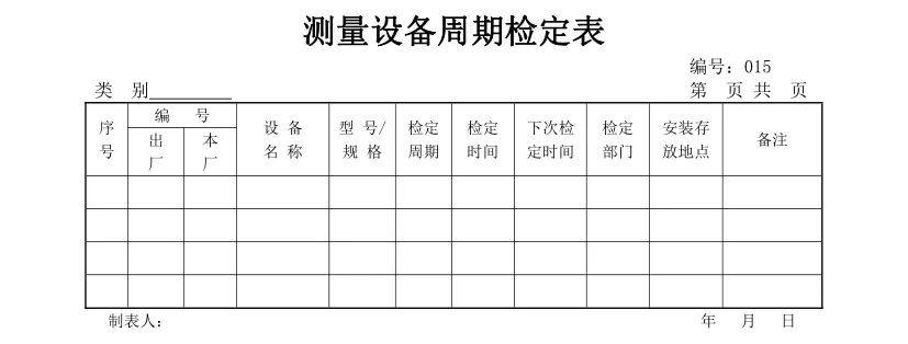 | 17、测量、实验设备周期检定计划表 | 68、产品开发建议表 |