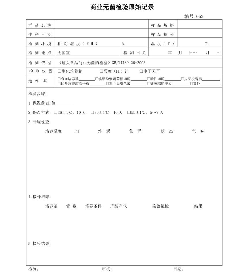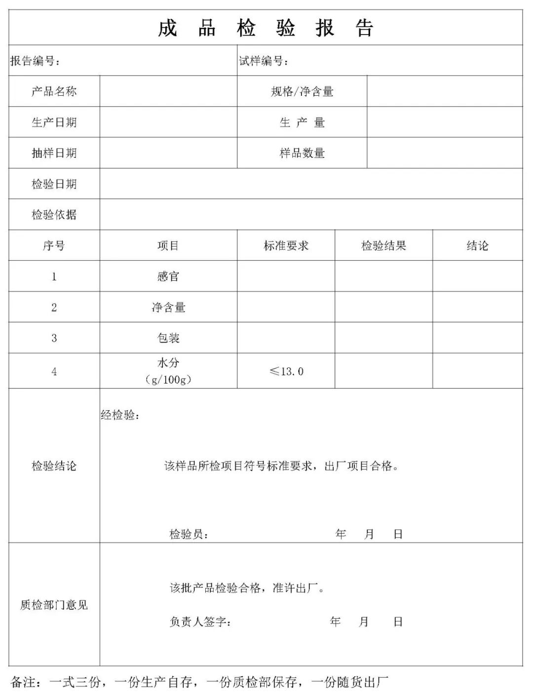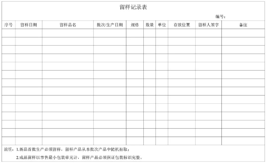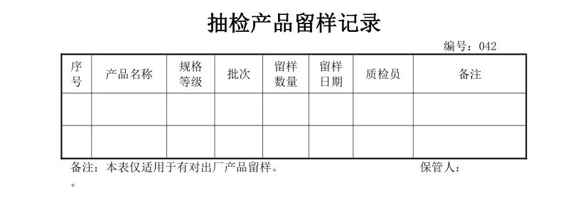 | 45、成品出厂检验报告 | 96、留样记录表 |