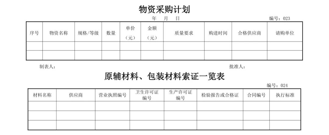 | 28、食品添加剂和加工助剂进货台账 | 79、调样采购需求表 |