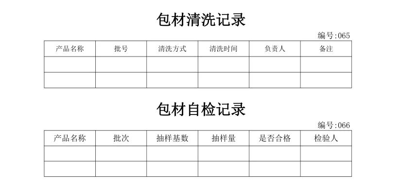 | 5、年度培训计划 | 56、包材清洗记录 |