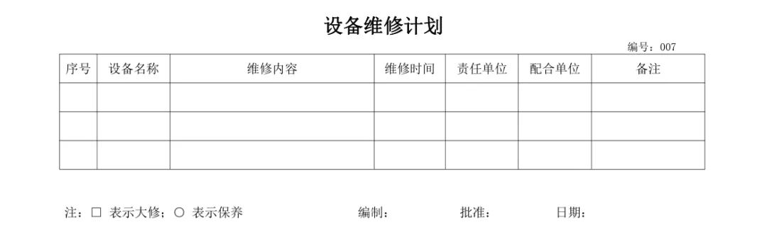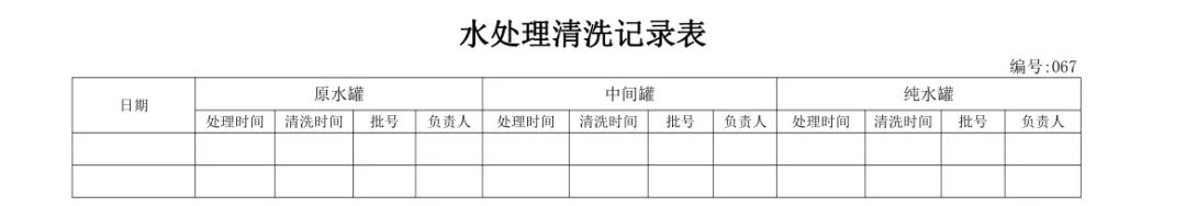 | 7、设备维修计划 | 58、水处理清洗记录表 |