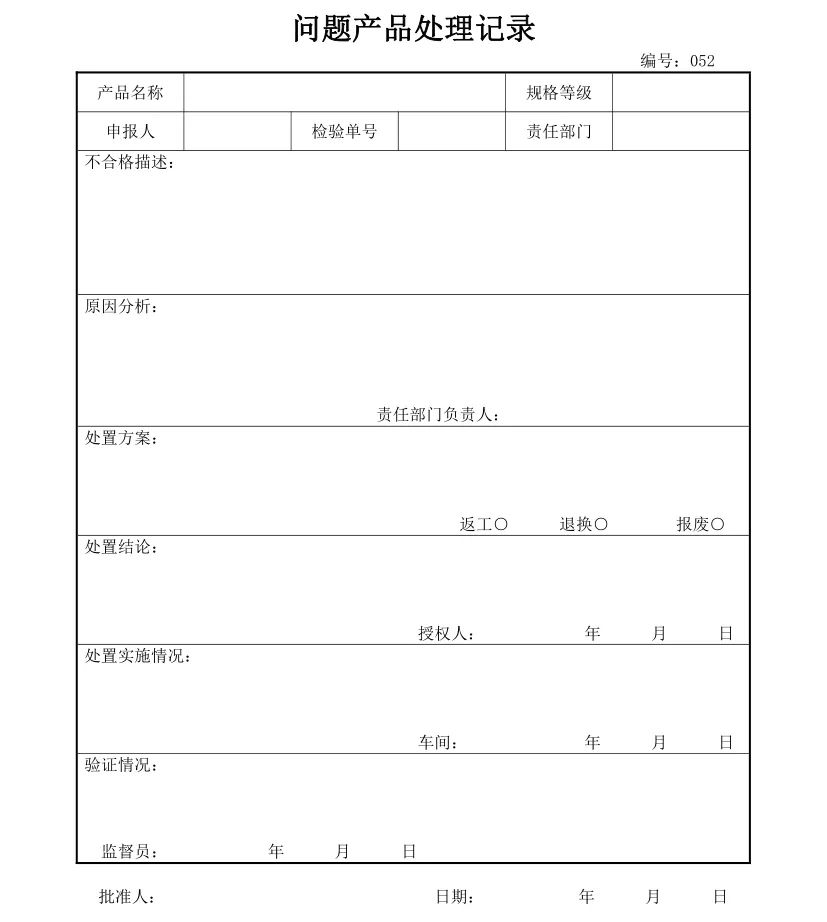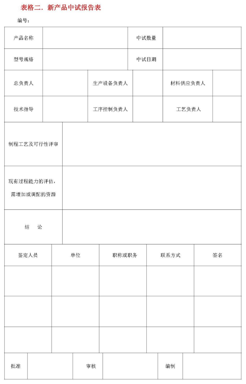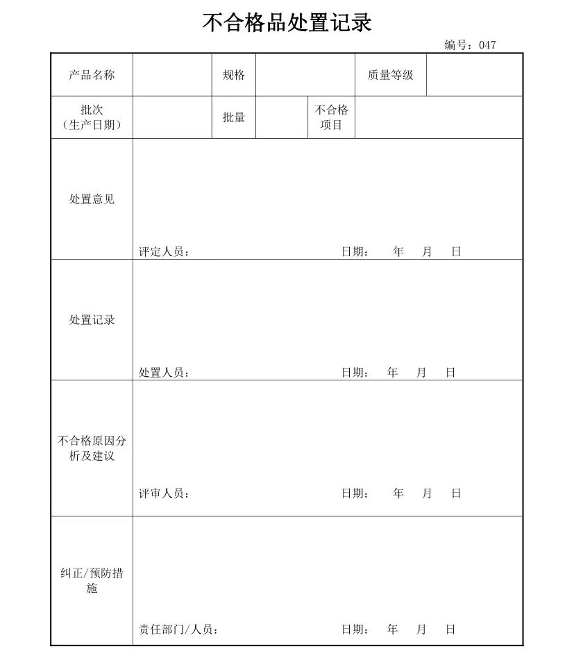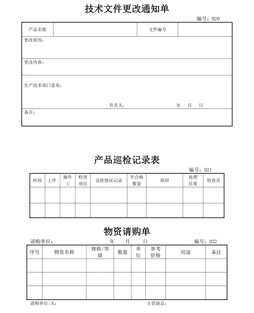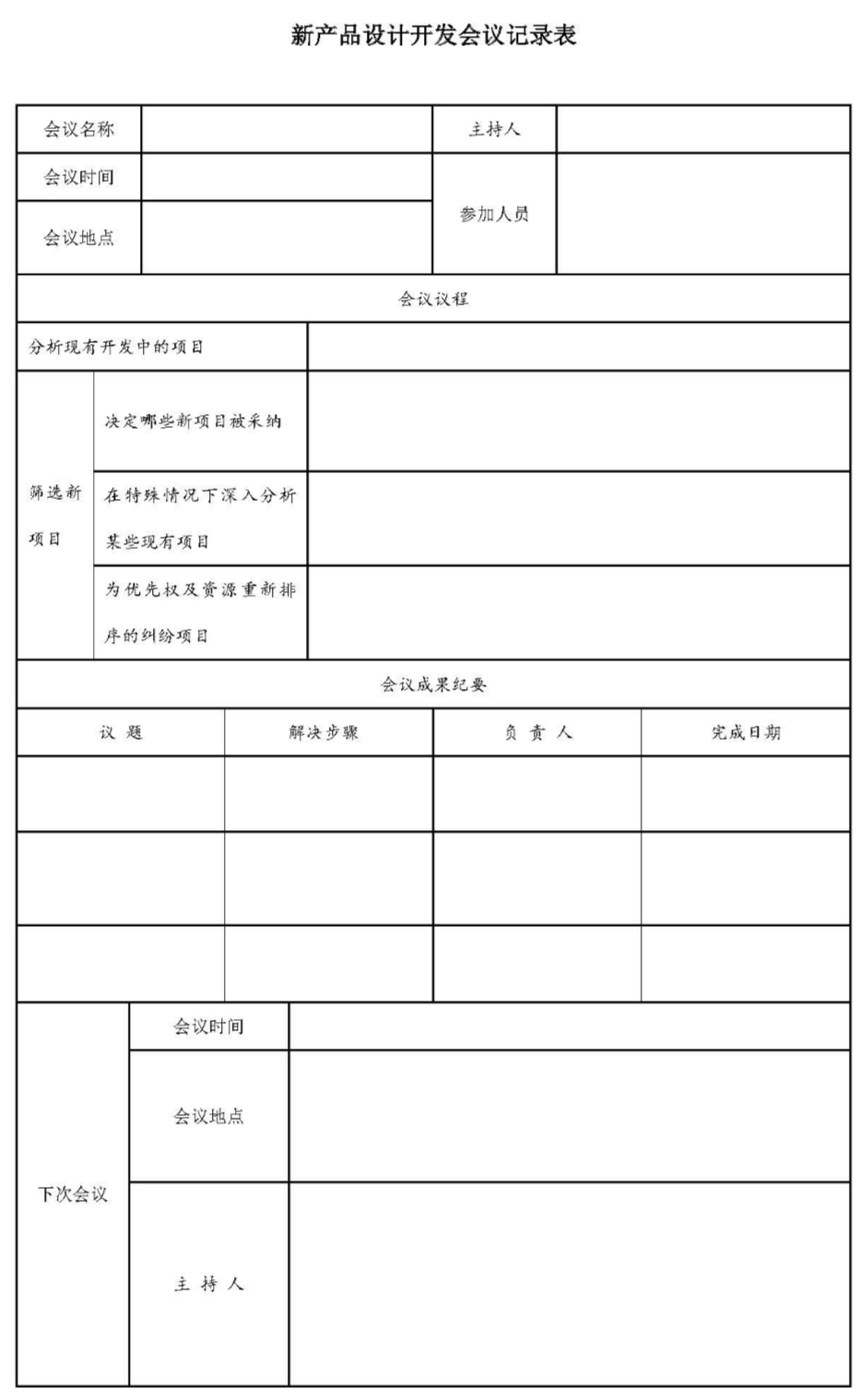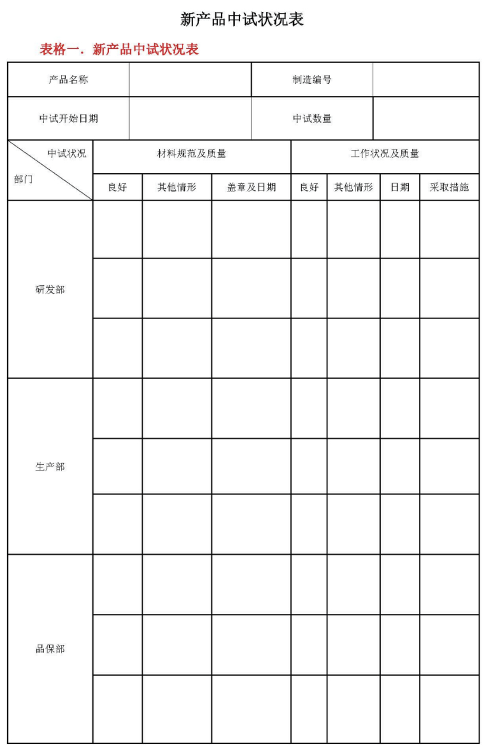 | 47、不合格品处置记录 | 98、新产品设计开发会议记录表 |