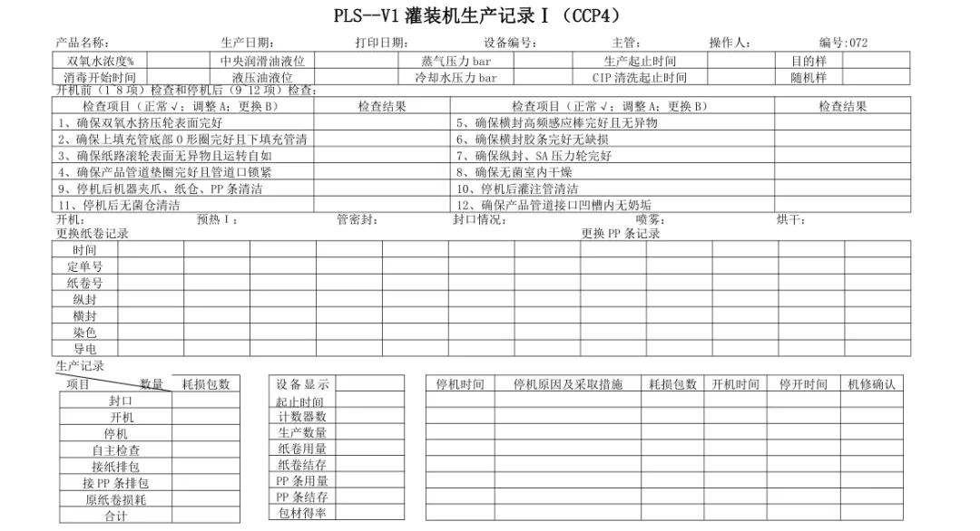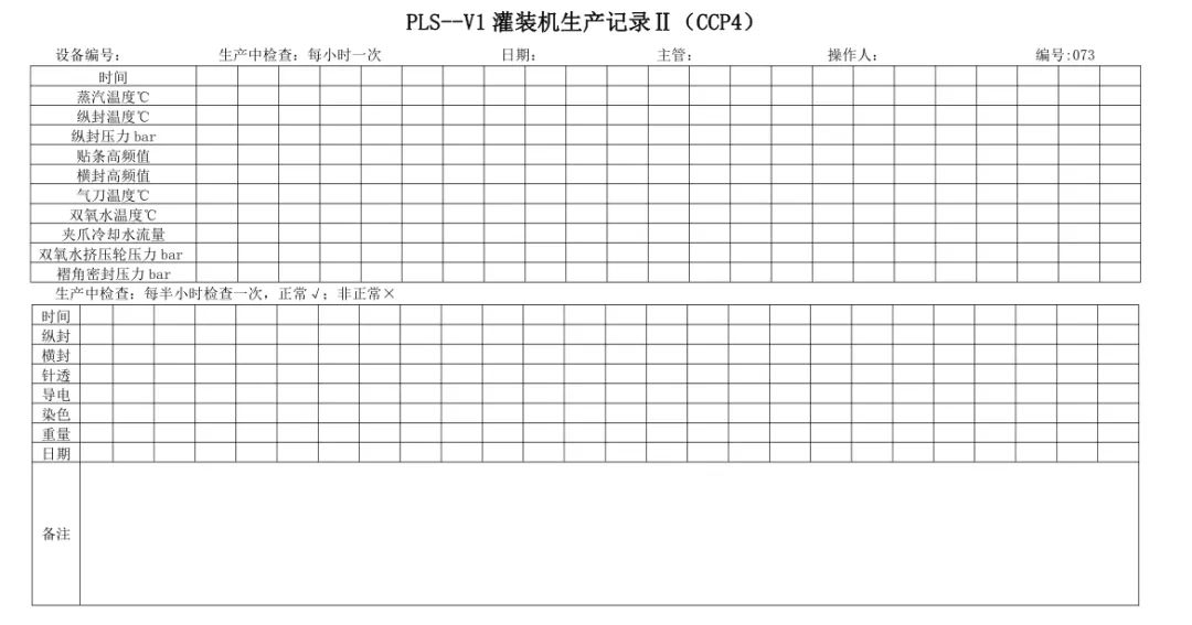 | 12、设备运行记录 | 63、PLS--V灌装机生产记录Ⅰ(CCP) |