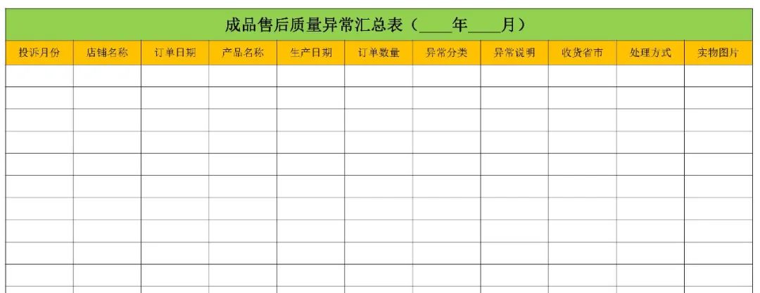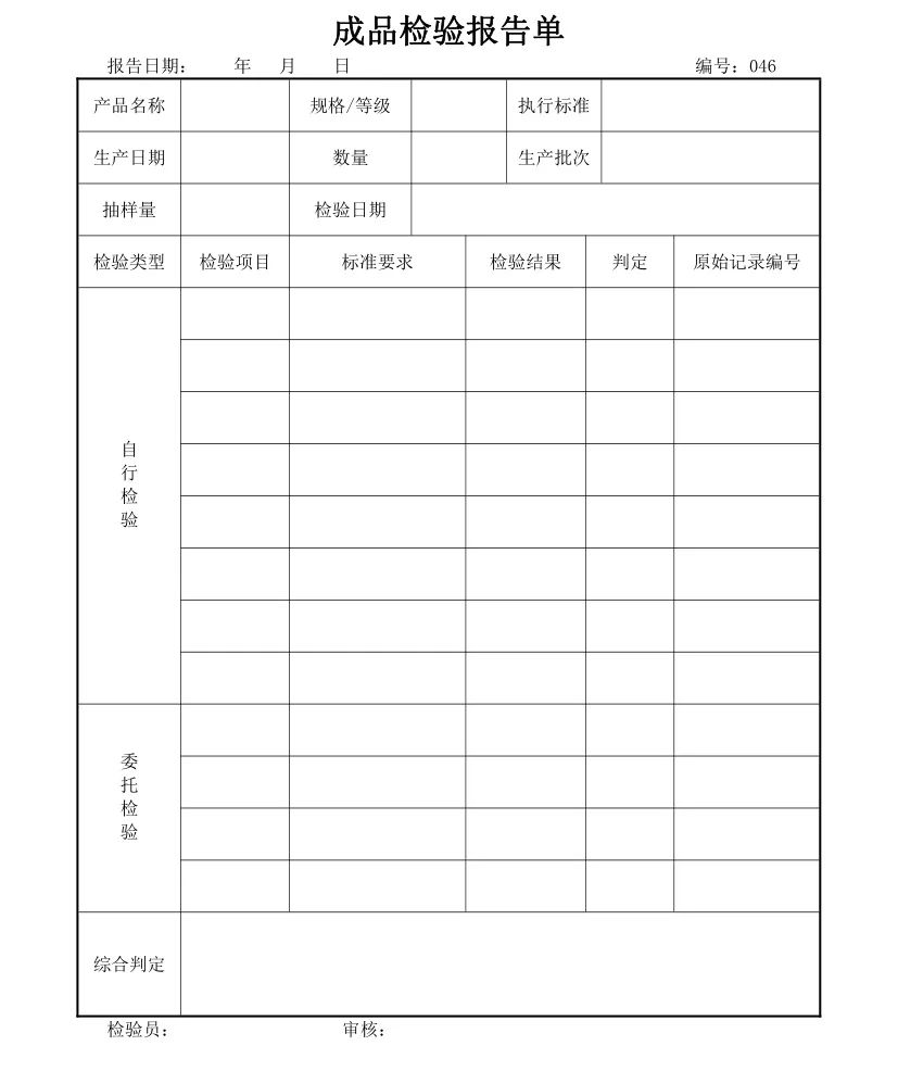 | 46、成品检验报告单 | 97、成品售后质量异常汇总表 |