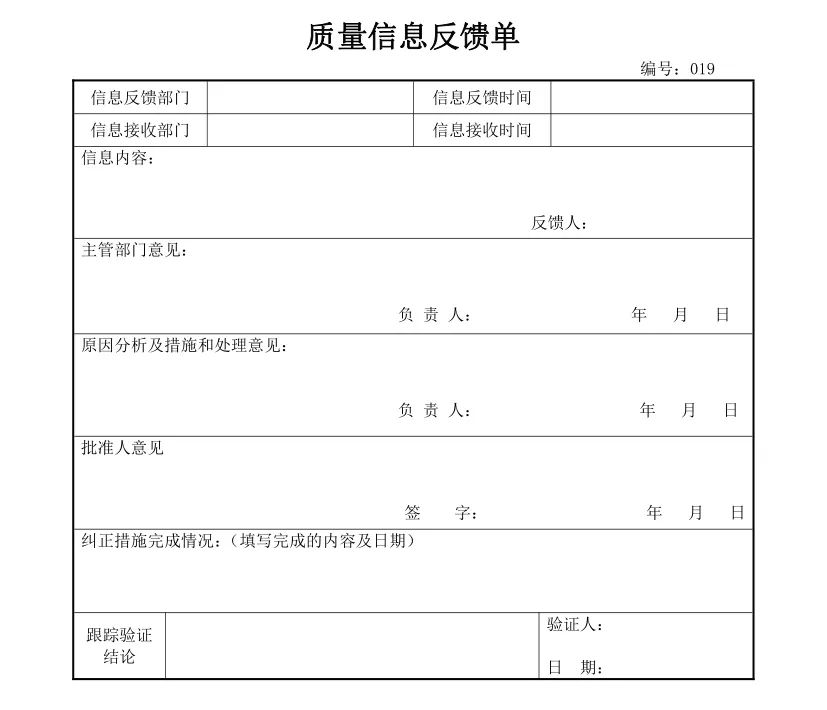 | 19、质量信息反馈单 | 70、样品制作计划 |