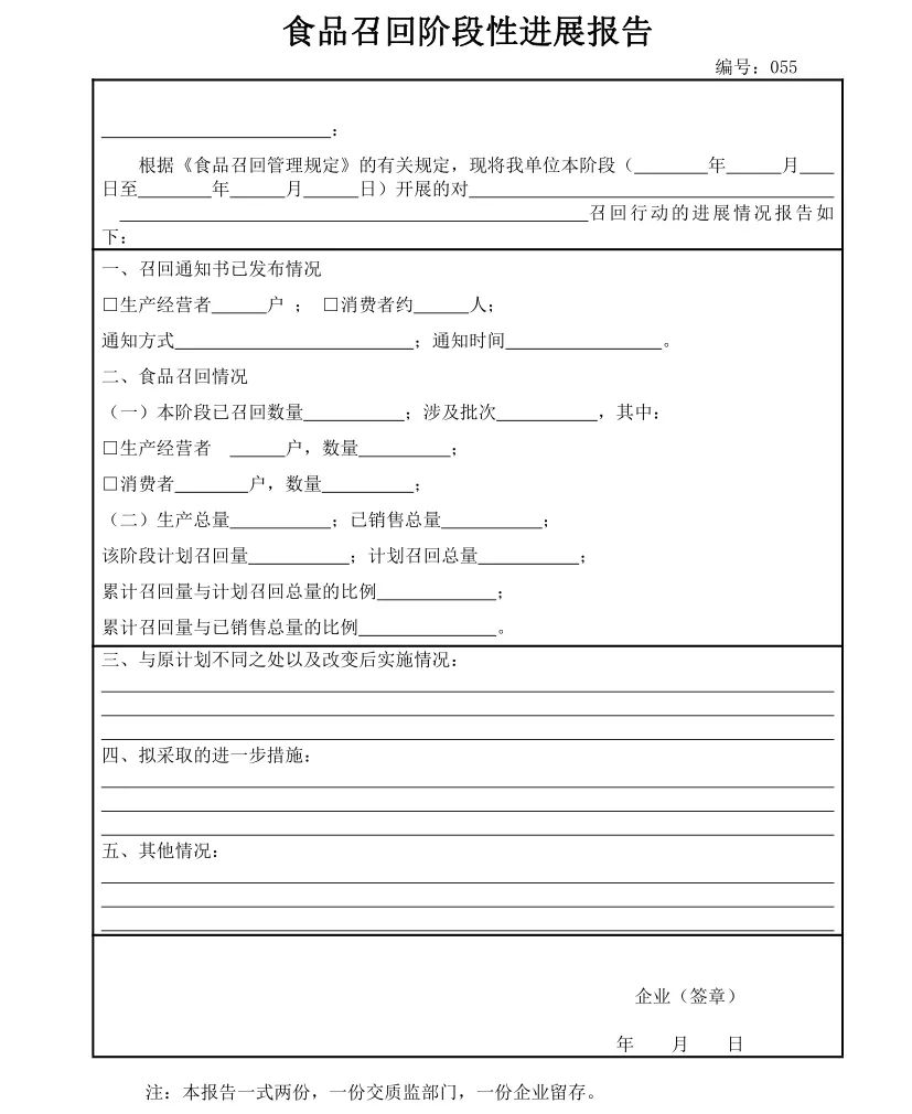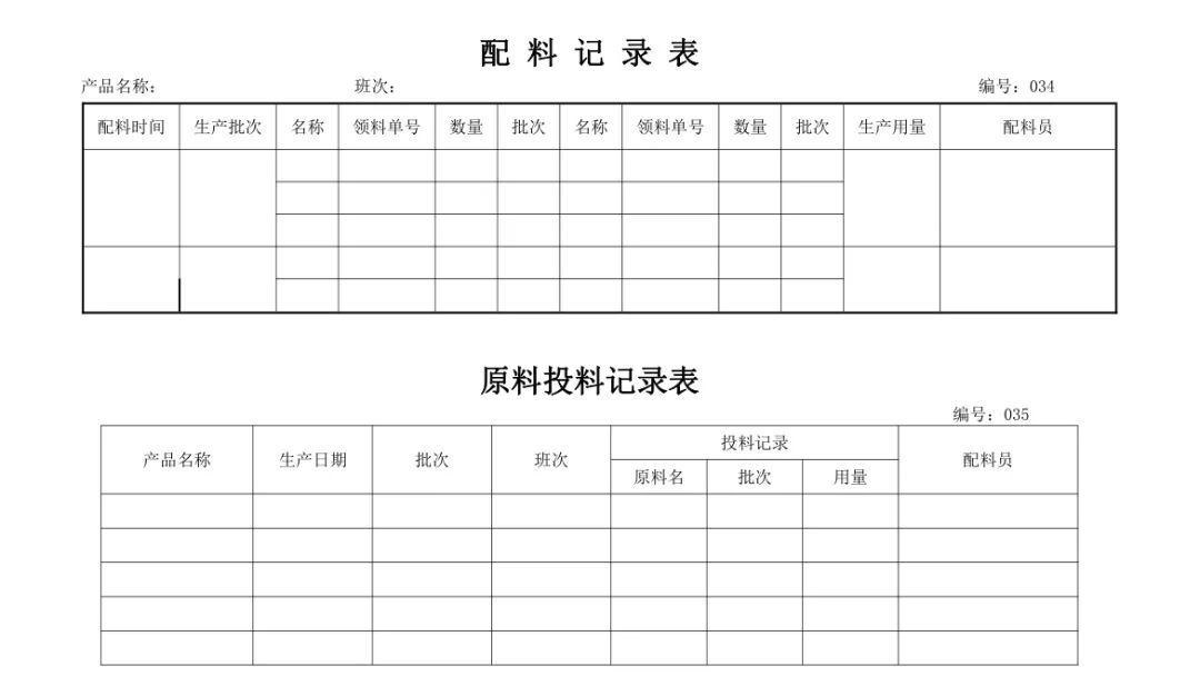 | 35、原料投料记录表 | 86、食品召回阶段性进展报告 |