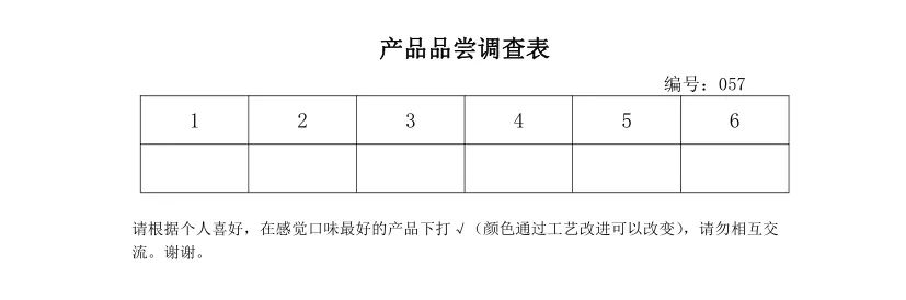 | 37、生产区卫生清理记录 | 88、产品品尝调查表 |