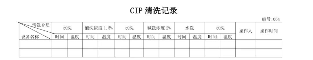 | 4、培训申请单 | 55、CIP清洗记录 |