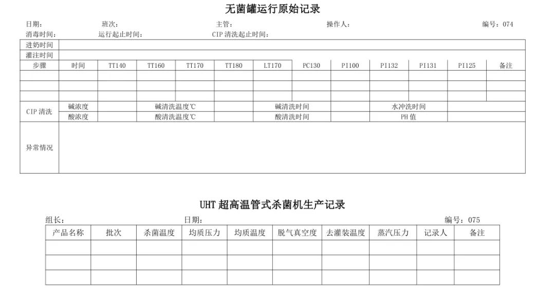 | 15、测量设备周期检定表 | 66、UHT超高温管式杀菌机生产记录 |