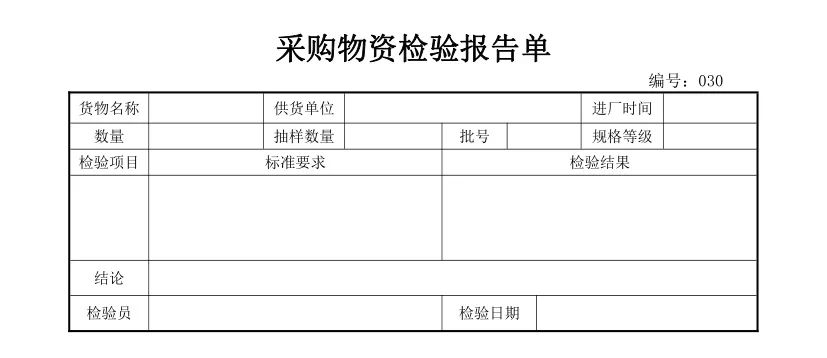 | 30、采购物资检验报告单 | 81、感官评定表 |