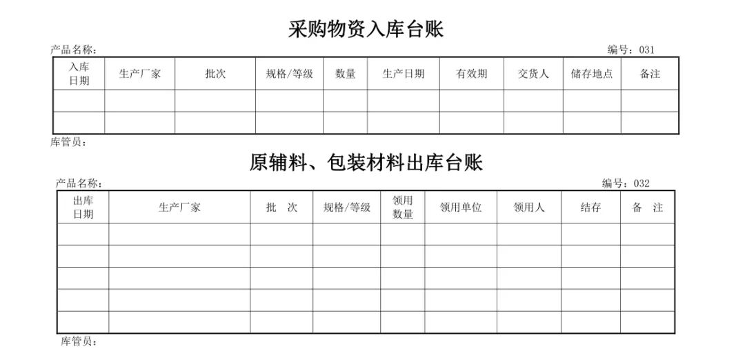 | 32、原辅料、包装材料出库台账 | 83、问题产品处理记录 |