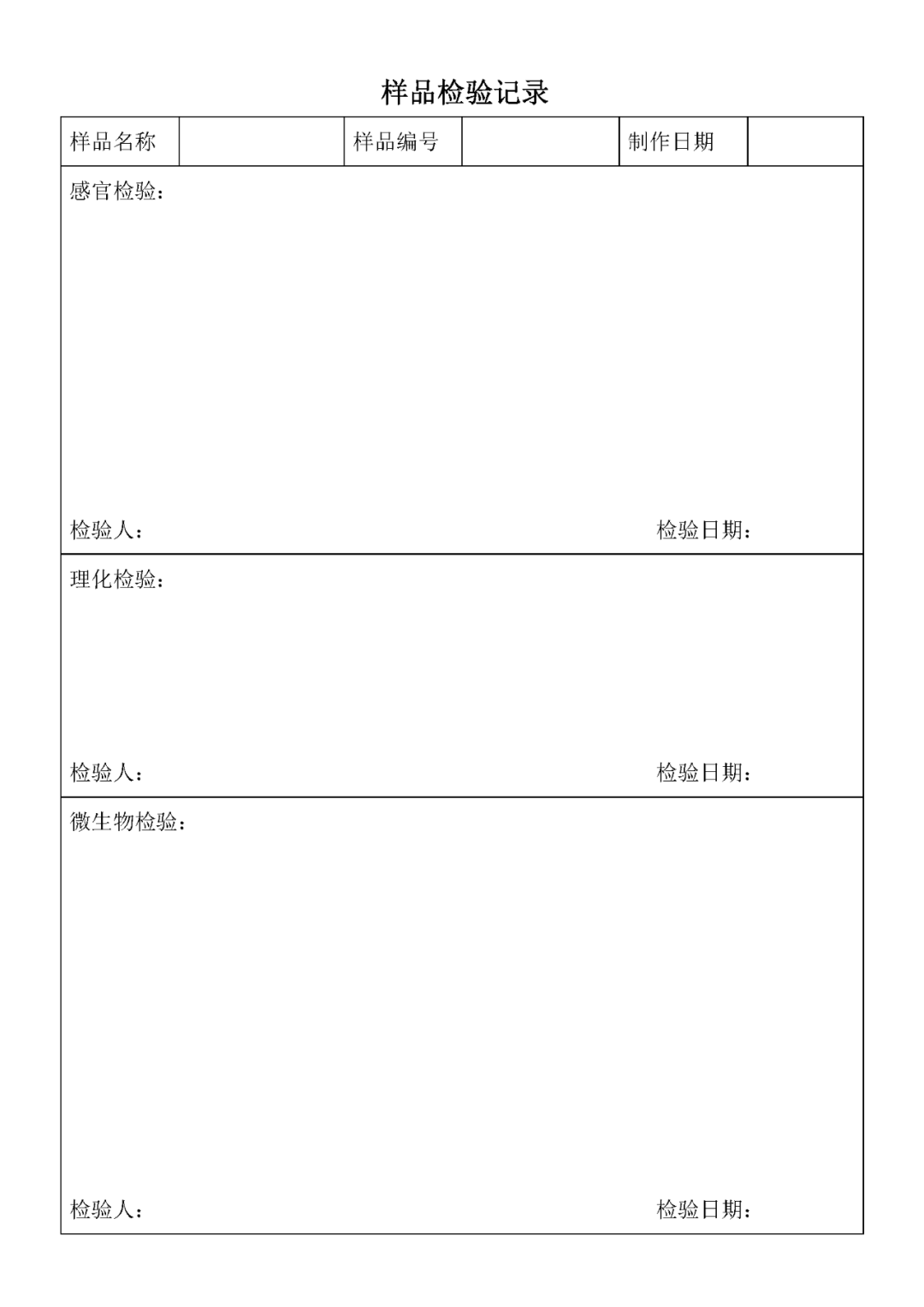 | 21、产品巡检记录表 | 72、样品检验记录 |