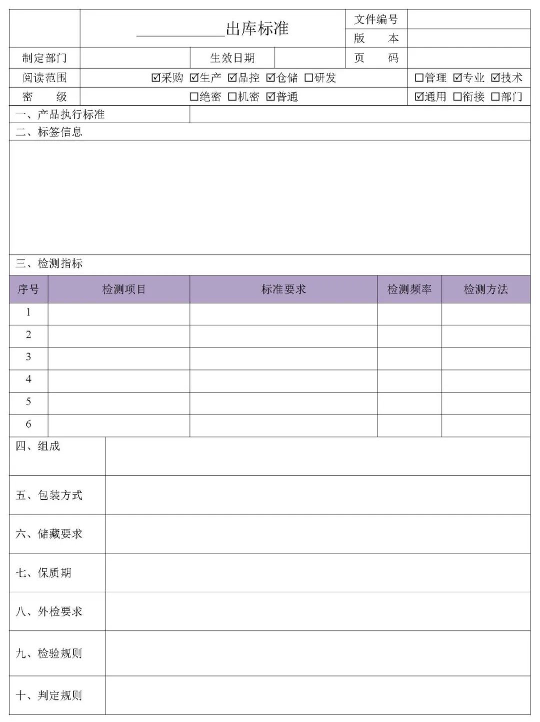 | 42、抽检产品留样记录 | 93、出库标准表 |